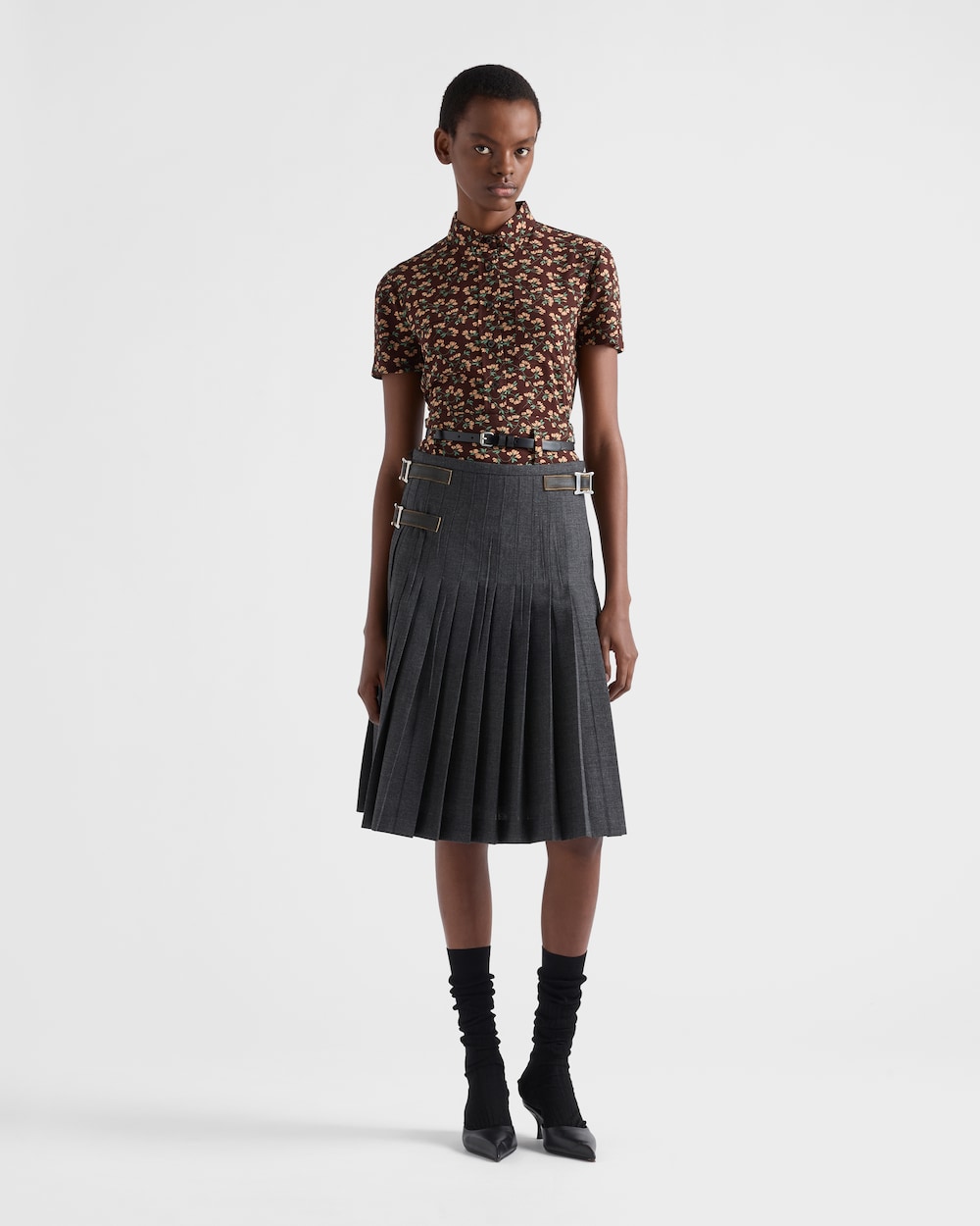 プリーツ ウール ホップサック スカート