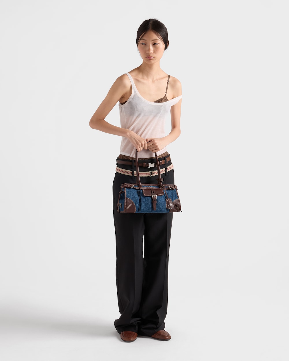 プラダ ボニー ミディアム デニム レザー ハンドバッグ