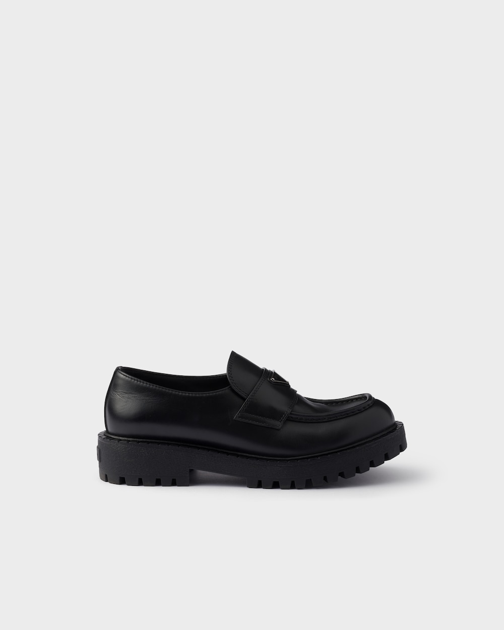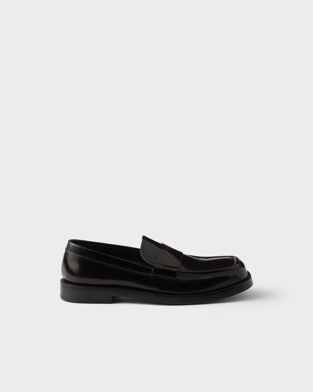 プラダ チョコレート ブラッシュドレザー ローファー