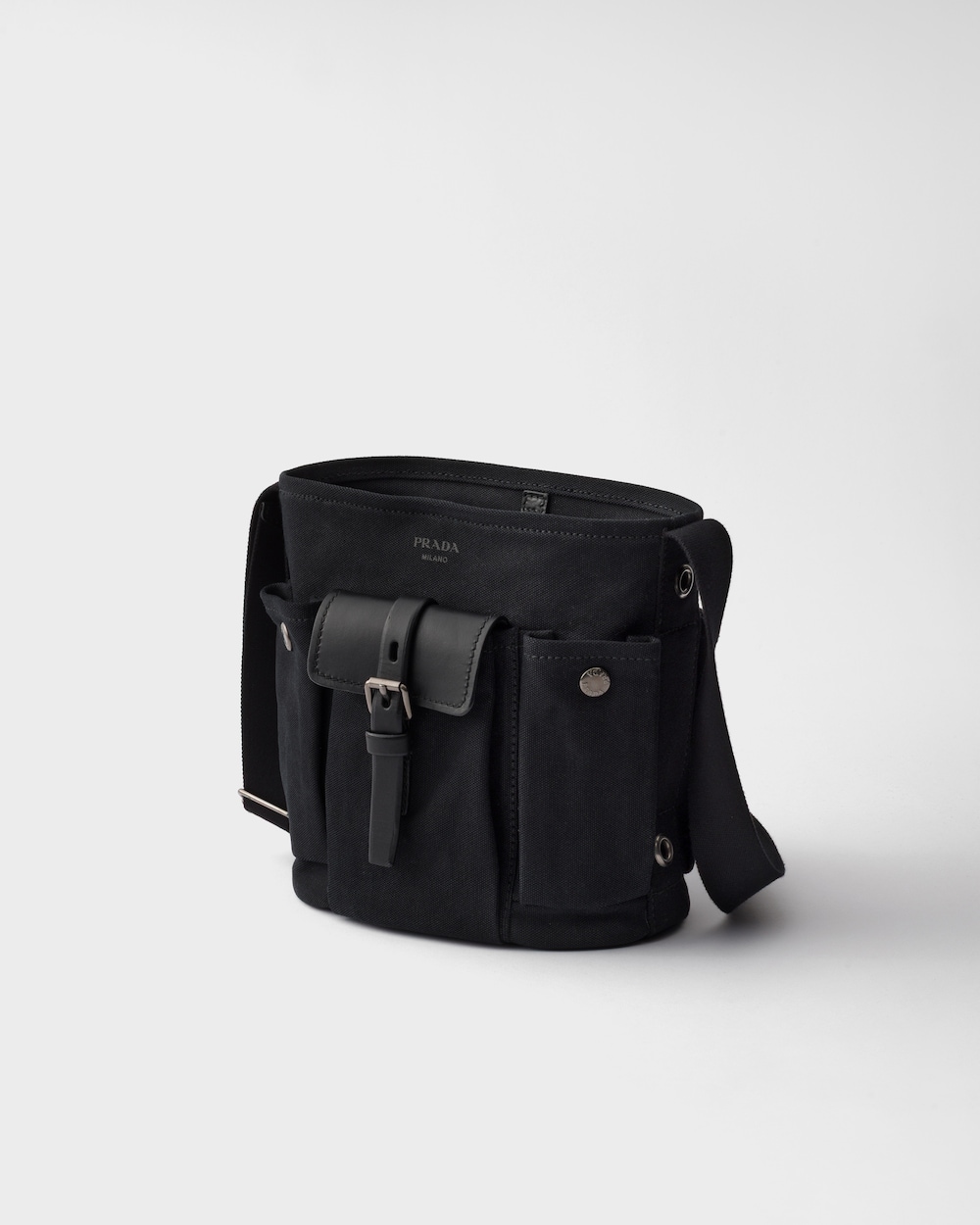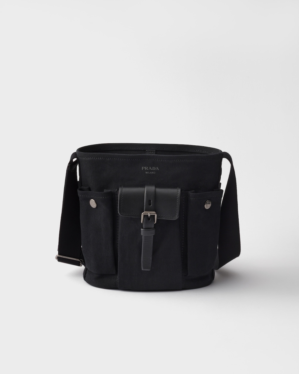 プラダ ルート キャンバス レザー ミニバケットバッグ