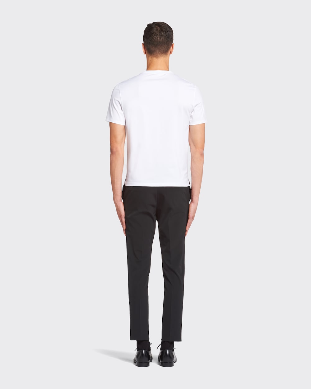 シンプルさの中にラグジュアリーを体現するエッセンシャルアイテム、プラダ Tシャツ。ベーシックなアイテムを再解釈し、新しい意味を提起する姿勢と探求心にあふれています。シルエットを際立てる、スリムフィットが特徴のコットンバージョン。