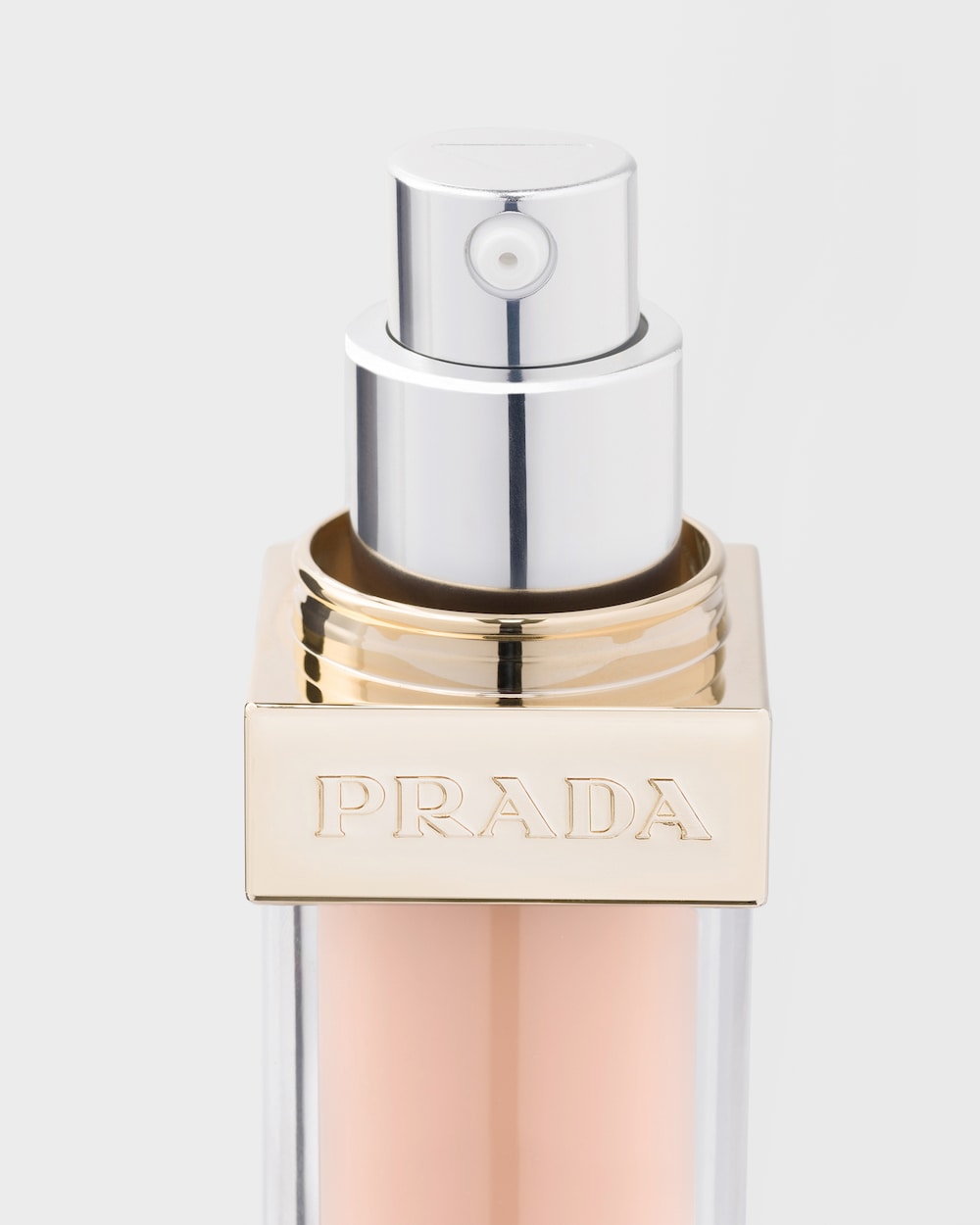 使うたび自肌を艶めかせる美容液ファンデーションIRL マイクロフィルター™ テクノロジー採用で細かな粒子が肌の上で微結晶化し光を拡散させる薄いフィルターに。毛穴や小じわを飛ばし光のベールをかけたように輝く肌へ崩れにくい、色移りしづらいフォーミュラ。prada.comおよび一部の小売店にて限定販売。Prada店舗でのお取り扱いはございません。
