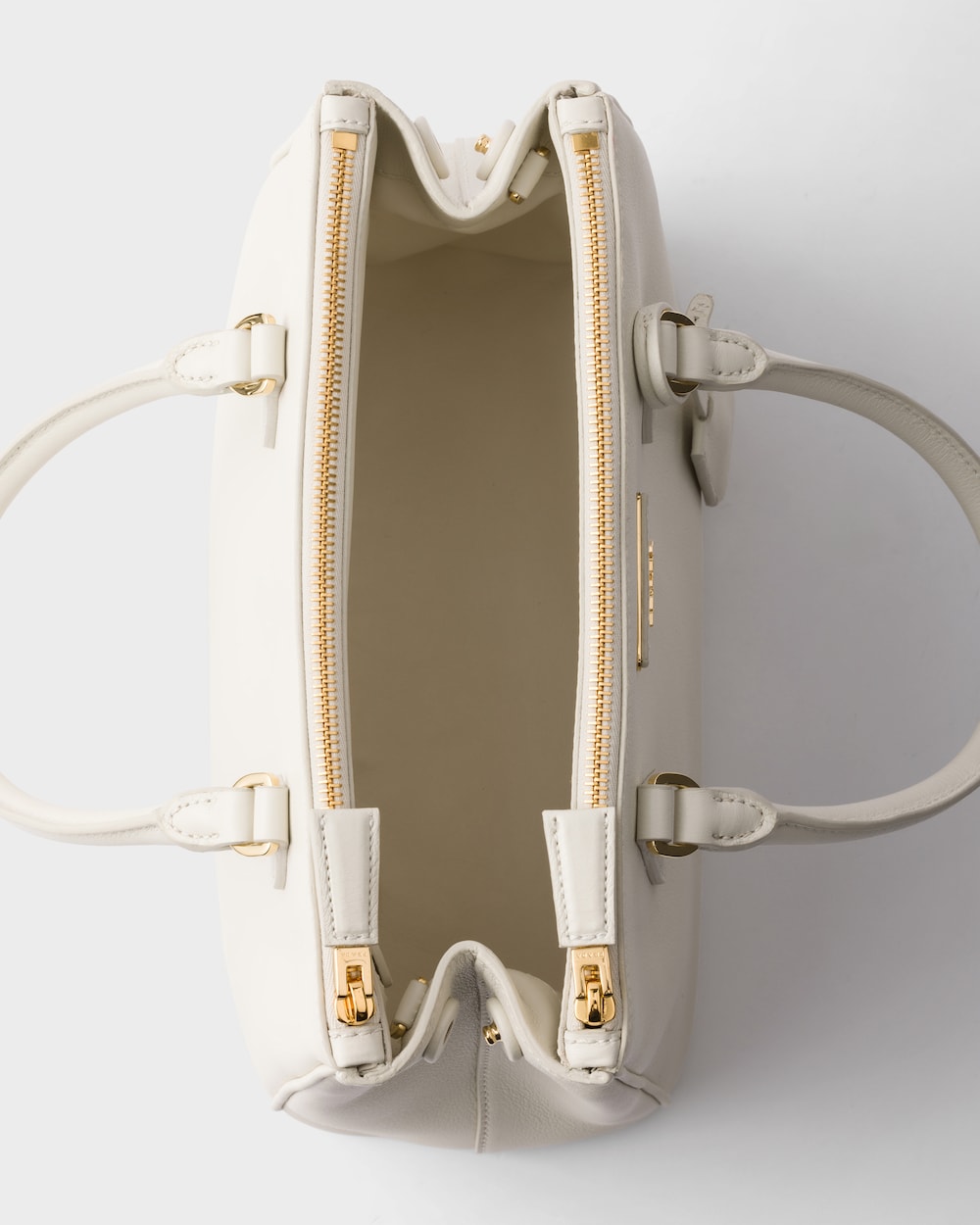 プラダのDNAに息づくクラフツマンシップの緻密な技巧と工業的な精確さが融合した、エレガントでタイムレスなプラダ ガレリアバッグ。80を超えるパーツを手作業で組み立てたこのバッグは、1913年にプラダ1号店がオープンした、ミラノの歴史的なガレリア・ヴィットリオ・エマヌエーレⅡ世にちなんで名づけられています。レザーのボディにアイコニックな3個のポケットとゴールドトーンのメタルパーツをあしらい、プラダを象徴するトライアングルロゴを飾りました。