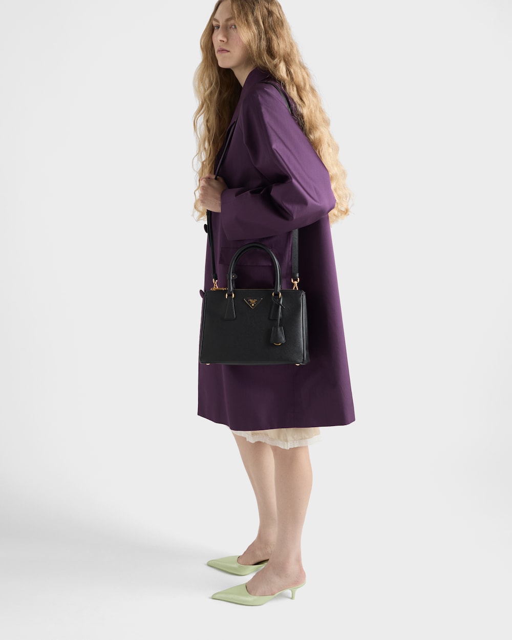 83個のパーツからなるプラダ ガレリア バッグは、工業的な精密さと手作業でしかできない洗練されたクラフツマンシップの正確さが融合した製造工程を経て作られます。デザインはクリーンでエレガントでありながら、実用性を備え、歴史と現代性を融合させたフォルムと機能の調和が映し出す洗練された美学を表現しています。21世紀のプラダのアイデンティティを象徴する、タイムレスな魅力が詰まったプラダ ガレリア。創業者のマリオ・プラダが特許を取得したサフィアーノレザーを使用し、傷や多少の水滴にも強いクロスハッチ加工のテクスチャーが特徴的な美しい素材感もお楽しみいただけます。