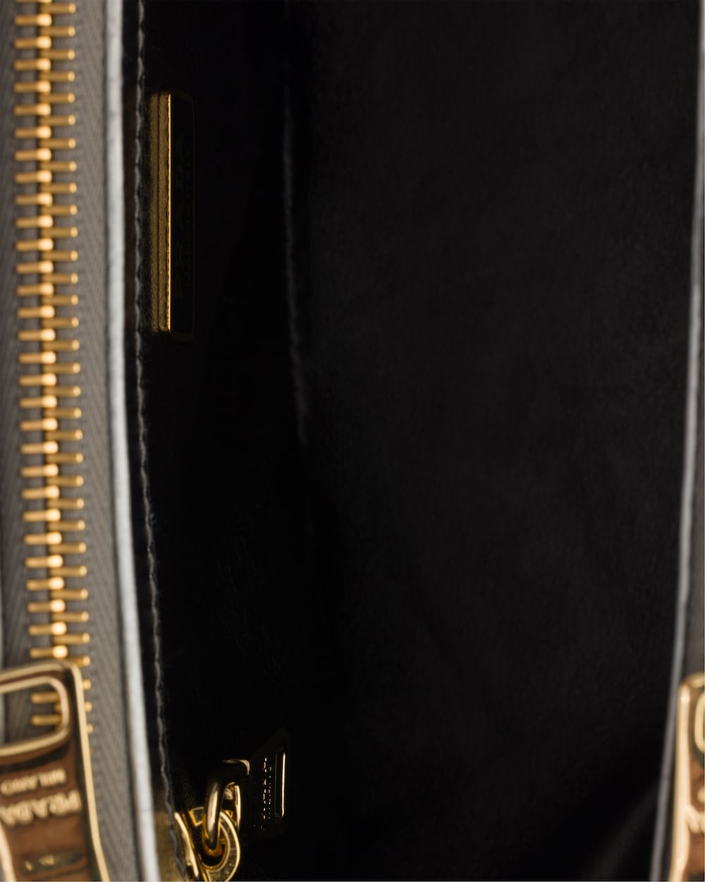 ブランドの多面的なアイデンティティを表現した、エレガントでタイムレスなデザインが光るプラダ ガレリアバッグ。アイコニックなスタイルを、よりコンパクトなサイズで新しい縦長シルエットに仕上げました。取り外し可能なショルダーストラップ付きで、クロスボディバッグとしても使えます。「サフィアーノ」レザー(牛革)の象徴的なクロスハッチ加工と光沢のある仕上げが、バッグに独特で多様なキャラクターを与えています。