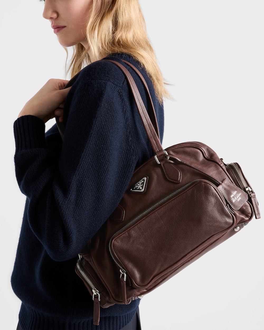 洗練された機能的でモダンなデザインのトップハンドルバッグは、プラダのDNAの原点に立ち返るものです。複数ポケットのシルエットは、柔らかなウォッシュドレザーで仕立てられており、革新性とクラフツマンシップの絶え間ない対話を表現しています。コンパクトでありながら収納力のあるボリュームと長いハンドルが特徴の、日常使いに最適なアクセサリー。カジュアルでありながら洗練された雰囲気を演出します。