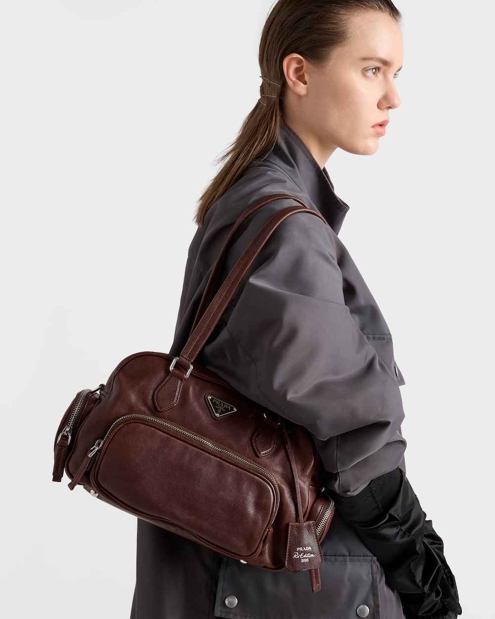 洗練された機能的なトップハンドルバッグは、モダンなデザインでプラダのDNAの原点に立ち返ります。マルチポケットシルエットは、柔らかいウォッシュドレザーを使用したデザインで、革新とクラフツマンシップの間の継続的な対話を表現しています。コンパクトなボリュームとロングハンドルがカジュアルシックな印象を与える、日常使いに最適な汎用性の高い個性的なアクセサリー。