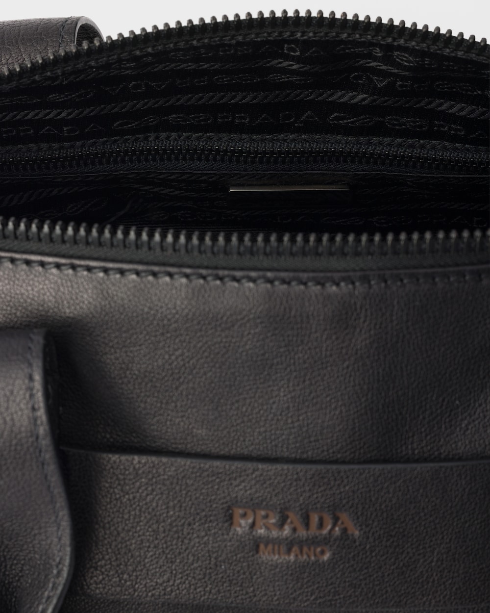 - ファスナー付ポケットを備えたロゴプリントナイロンライニング