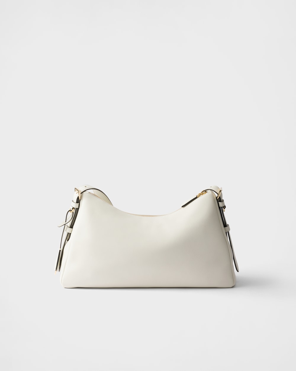 2024年秋冬広告キャンペーンに登場した、90年代の洗練されたミニマリズムが漂う、新作のプラダ エメ バッグ。思わずバッグを抱えたくなるような柔らかなシルエットのデザインで、ショルダーバッグとしてもクロスボディバッグとしてもエフォートレスに活躍します。