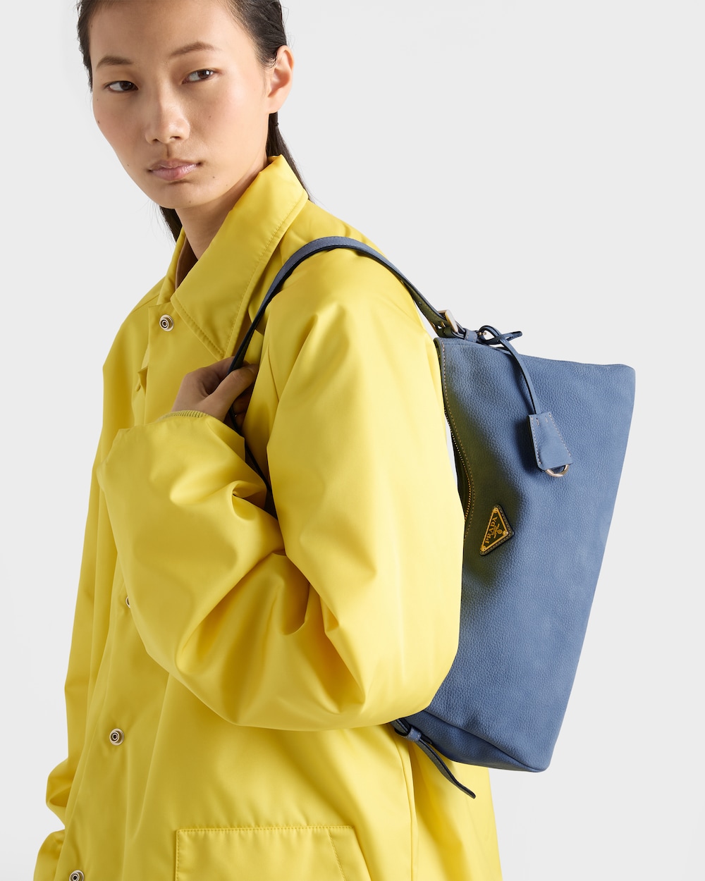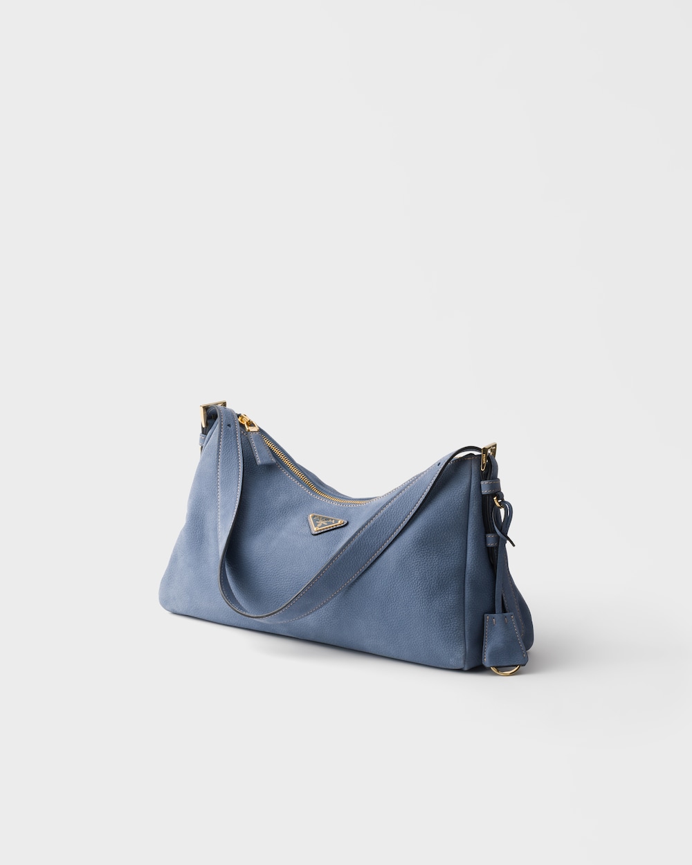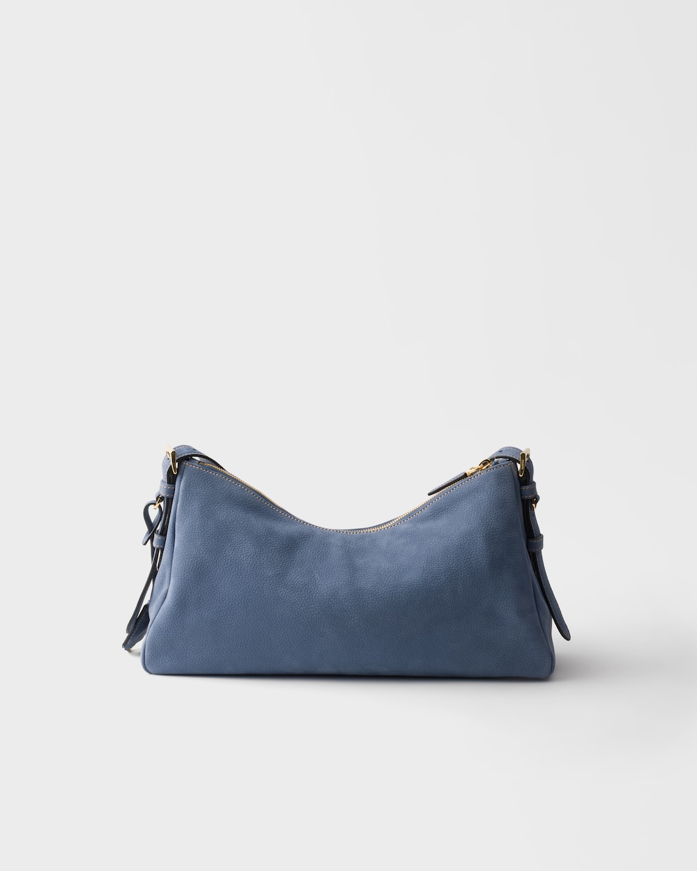 プラダ エメは、肩掛けやクロスボディで身に着けたときに、思わず抱きしめたくなるような柔らかく軽やかなシルエットを想起させます。洗練された多用途のスタイルは、耐久性がありながら触り心地がベルベットのようなヌバックレザーを使用しています。
