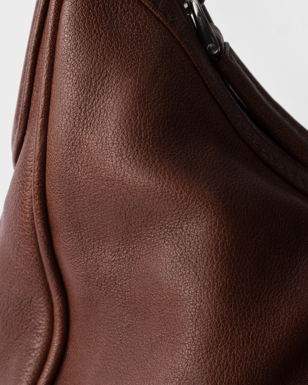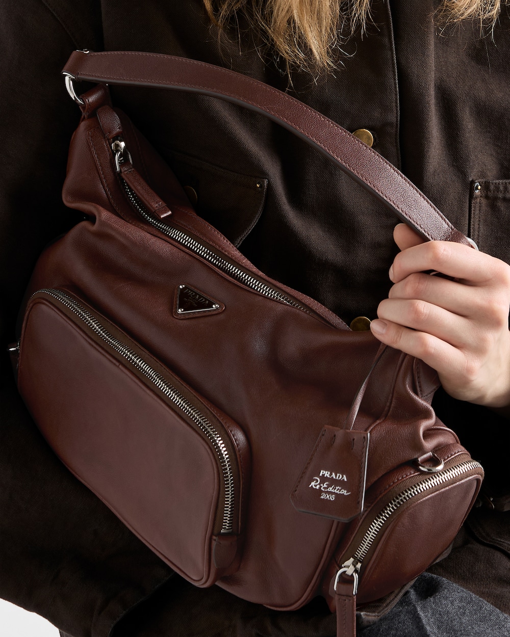 洗練された機能的でモダンなデザインのホーボーバッグは、プラダのDNAの原点に立ち返るものです。複数ポケットのシルエットは、柔らかなウォッシュドレザーで仕立てられており、革新性とクラフツマンシップの絶え間ない対話を表現しています。コンパクトながら実用的なボリュームと、カジュアルで洗練された雰囲気を演出する長めのハンドルにより、この汎用性の高く個性的なアクセサリーは、日常使いに最適です。