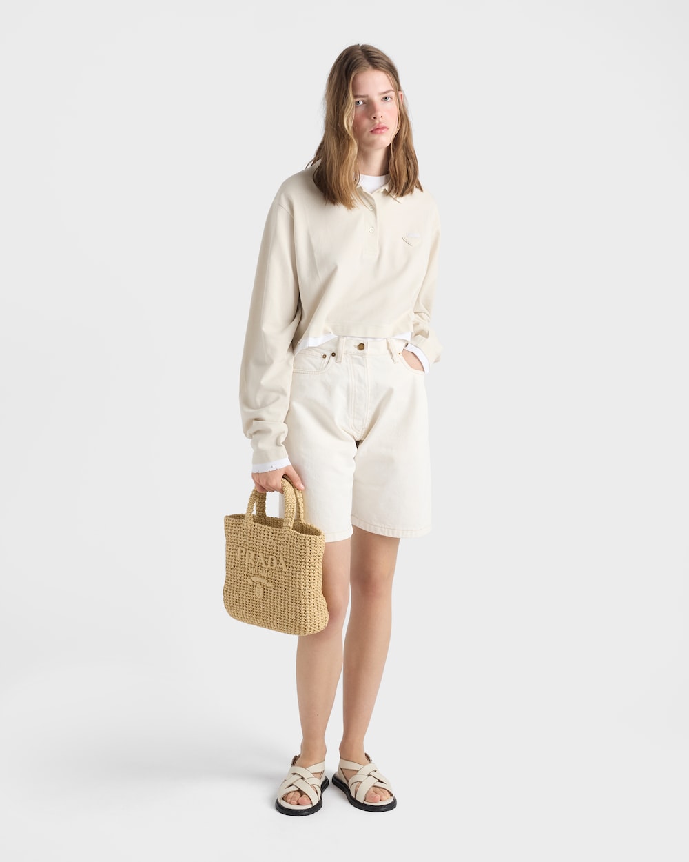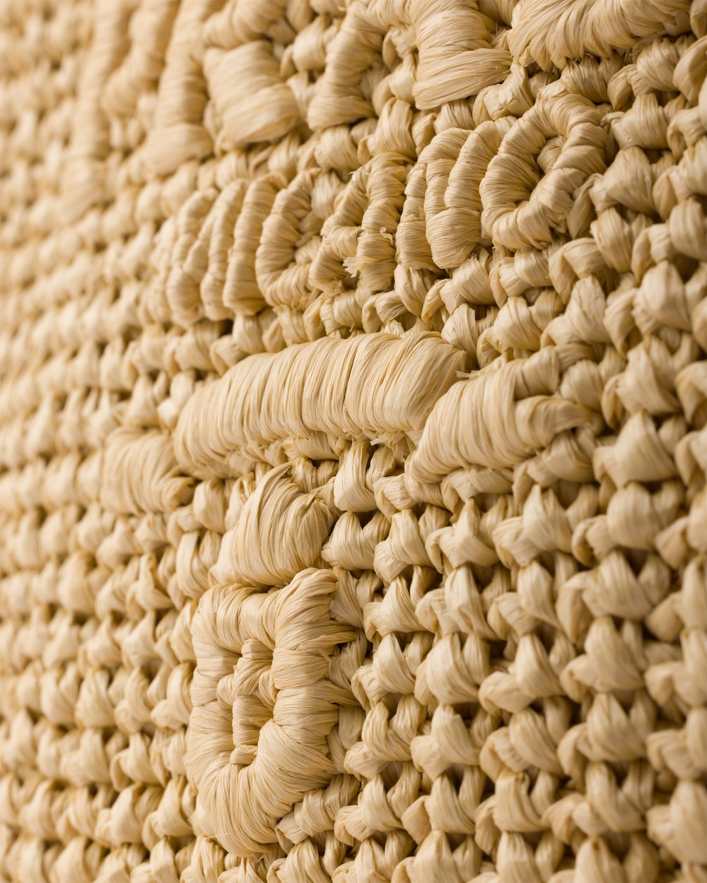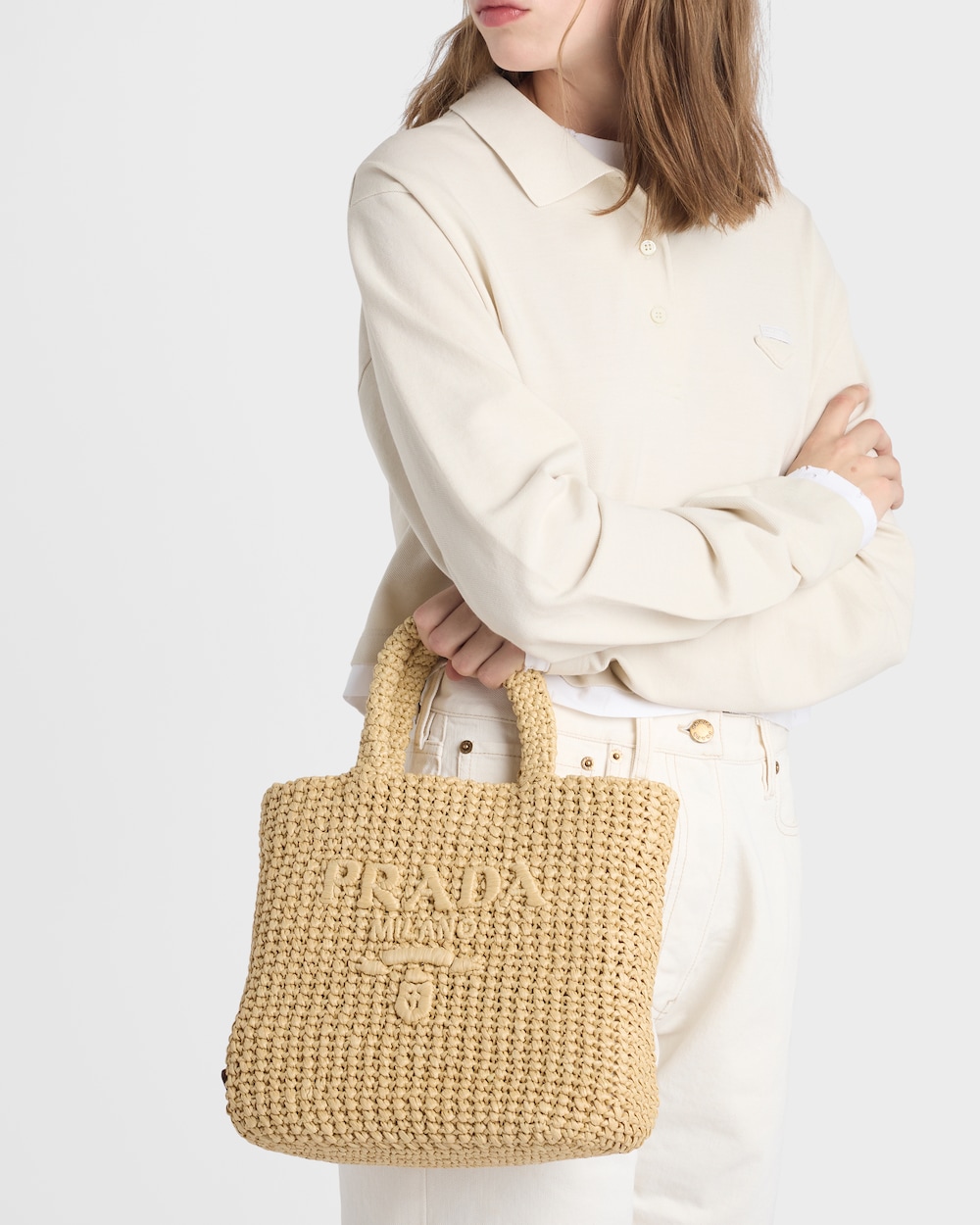 軽やかでデコンストラクテッドなカジュアルなムードの小さなトートバッグ。夏のクラシックを現代的に再解釈したデザインです。クロシェ編みのクラフツマンシップがコンパクトなデザインに奥行きと洗練を加え、同色のレタリングロゴで装飾されています。