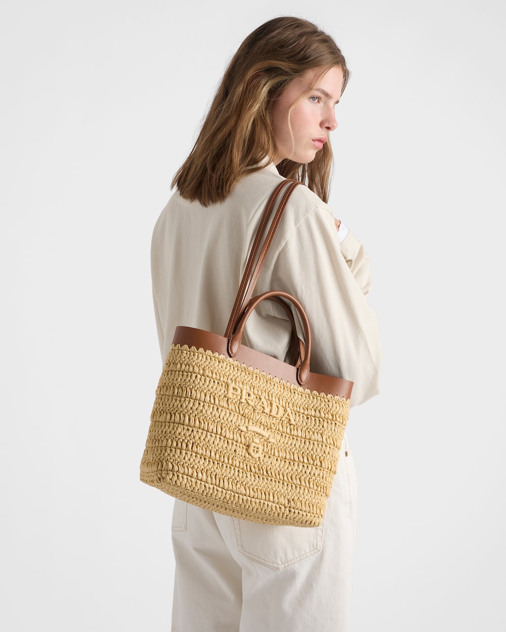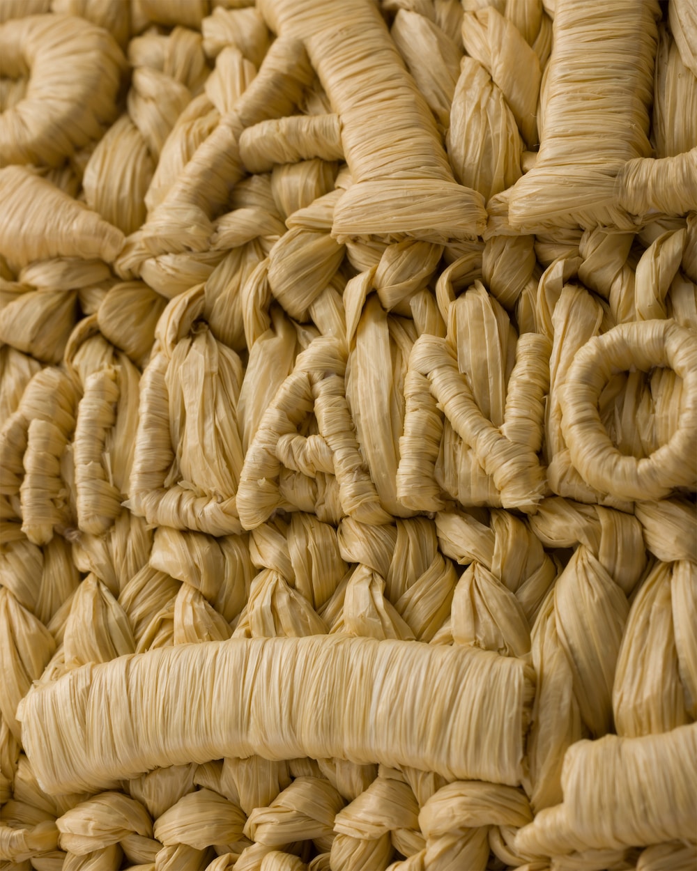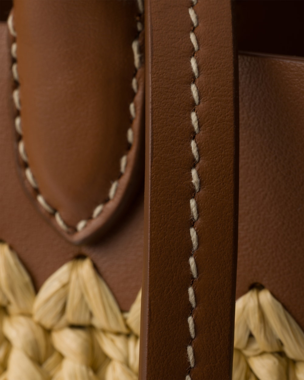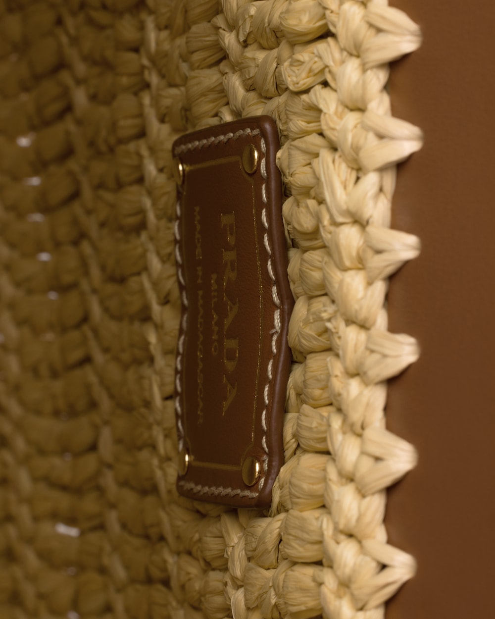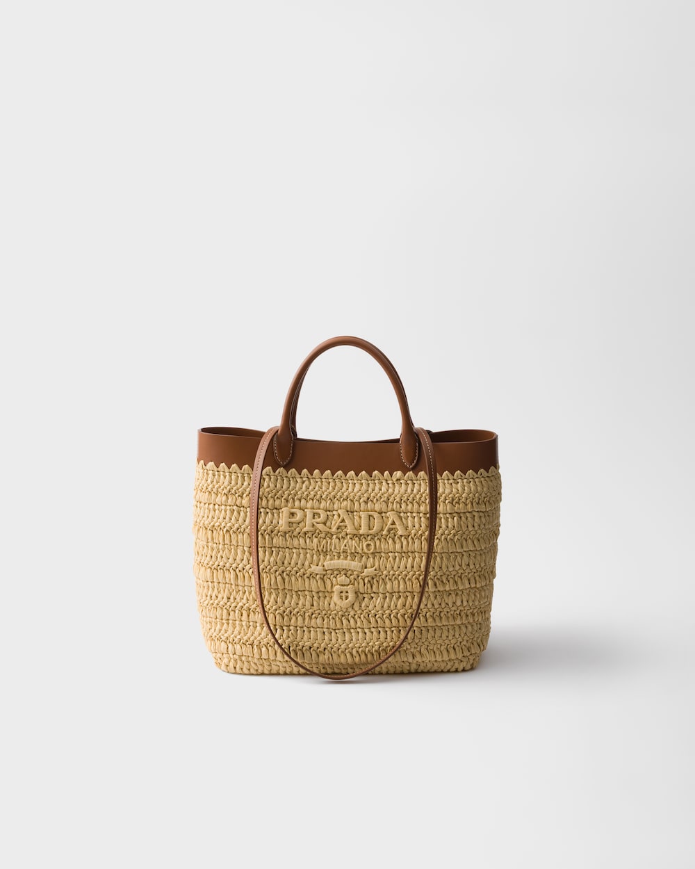 クロシェとレザーのディテールを組み合わせて夏らしい雰囲気に仕上げた、モダンで洗練されたトートバッグ。コントラストの効いたレタリングロゴをフロントに刺繍したデザイン。ダブルハンドルが備わっているので、ハンドバッグやショルダーバッグとして携帯できます。