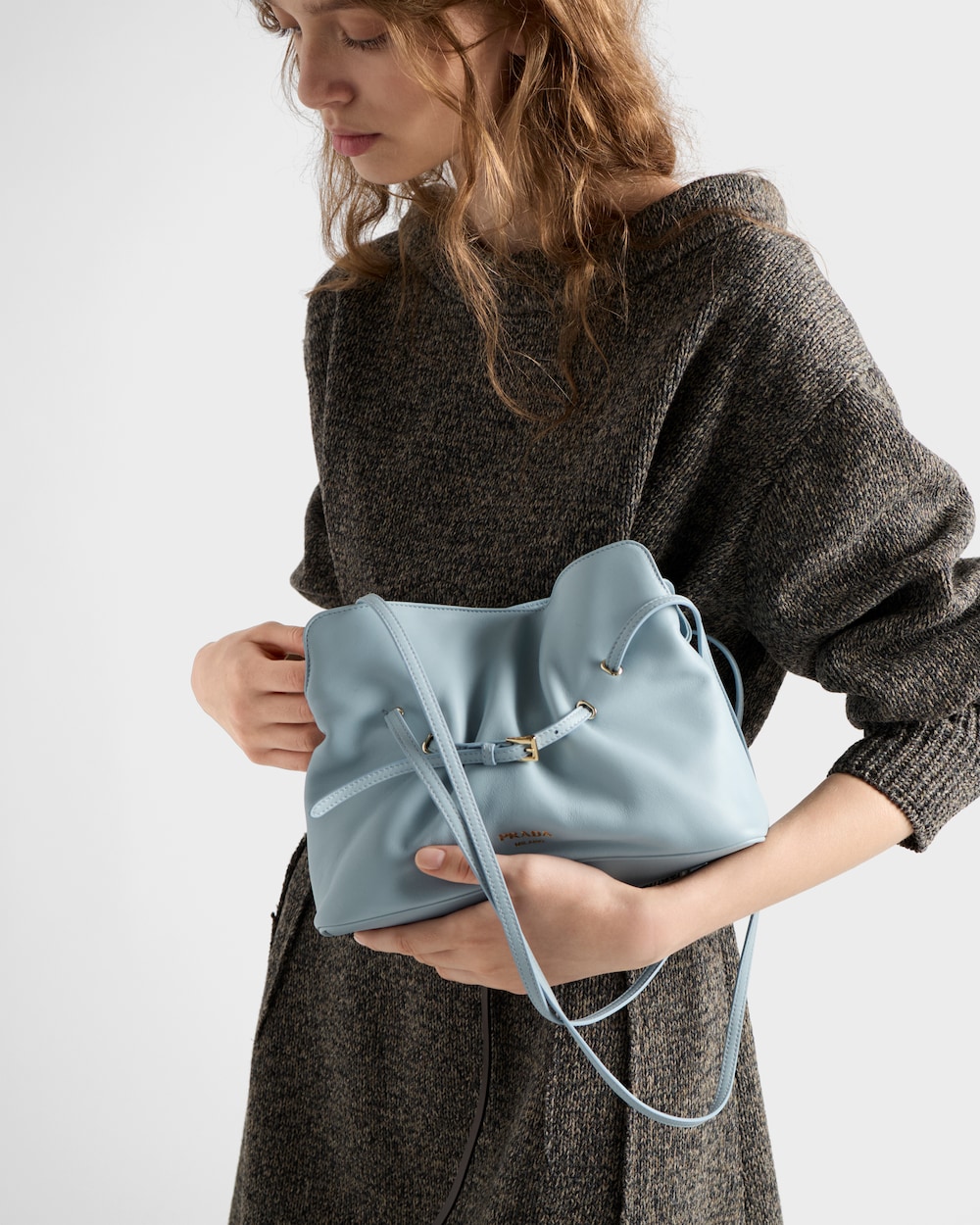 プラダ ダダ バッグは、フォルムと機能の絶妙なバランスを体現し、ナチュラルで本物志向のエレガンスを表現します。細身のベルトがナッパレザーのボリュームを美しく構築し、柔らかなプリーツとタックが繊細な陰影を生み出します。軽やかでフェミニンな構造は、実用性と洗練を兼ね備えたロングハンドルによって完成され、多彩なスタイリングを可能にします。