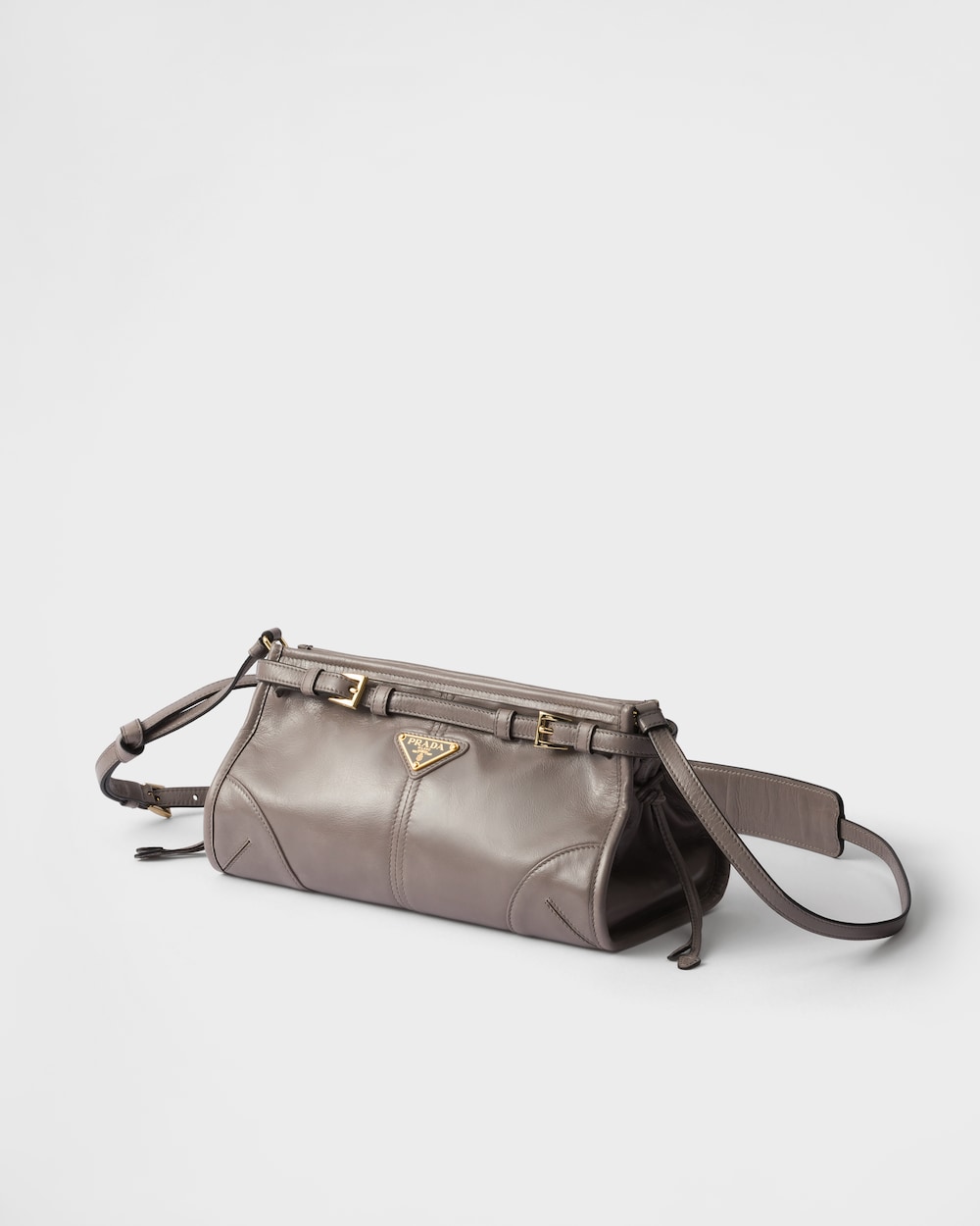 柔らかなレザーが洗練されたモダンなデザインを引き立てる、実用的でエレガントなショルダーバッグ。プラダのクラフツマンシップのノウハウを象徴する独特の艷やかな仕上がりのレザーが魅力。レクタンギュラーのシルエットを演出するエレガントなストラップを配し、ファスナー付センターポケットを備えたナッパレザー(羊革)の内張りを施しました。取り外し・調節可能なショルダーストラップを配し、アイコニックなエナメルメタルのトライアングルロゴを飾った汎用性の高いアイテム。