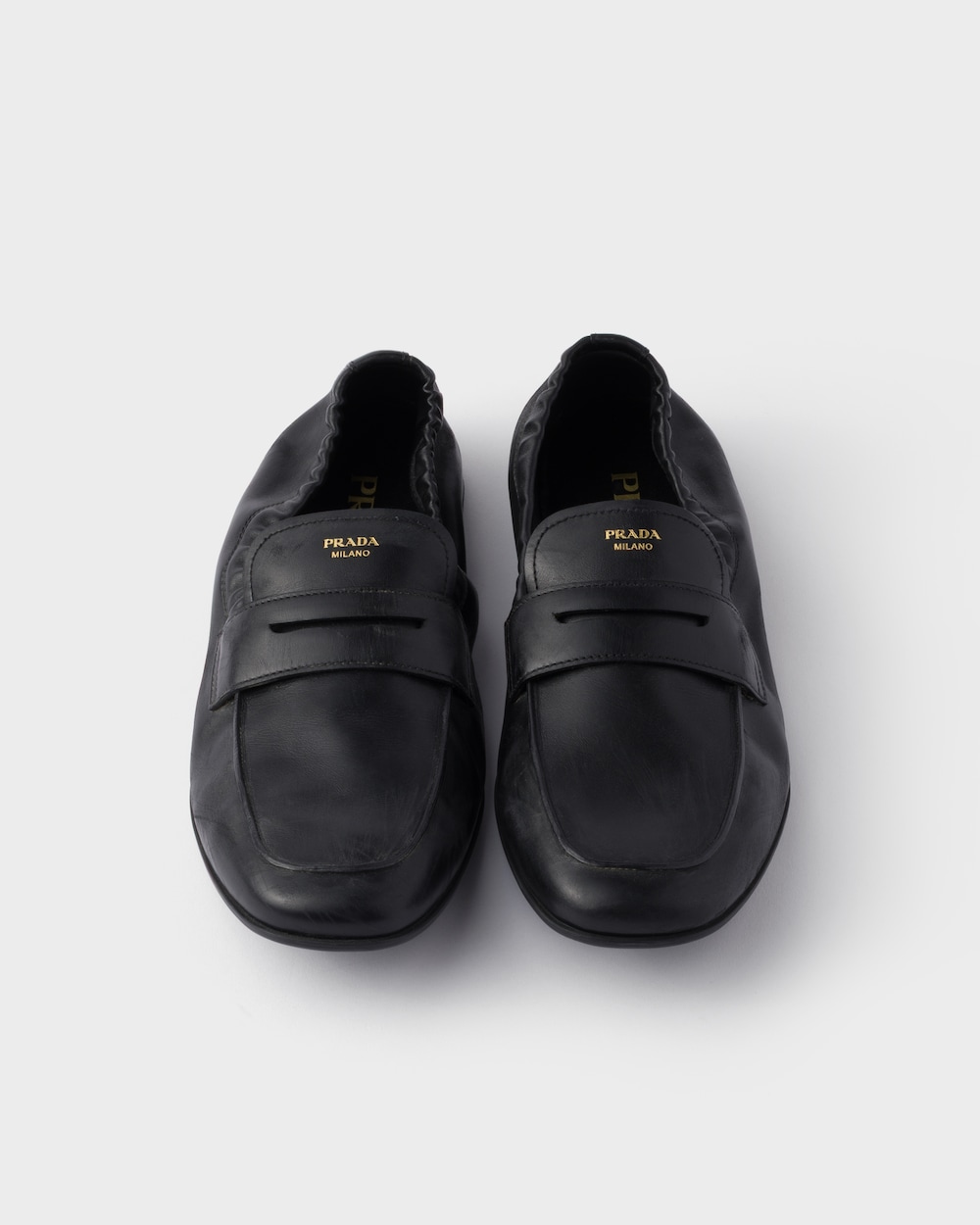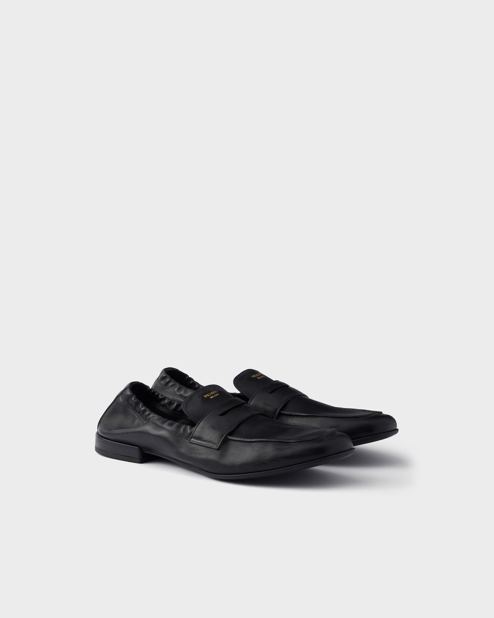 2025年秋冬コレクションでは、クラシックなフットウェアを現代的なアプローチで再解釈し、新たなシルエットを探求しています。このローファーは、柔らかなレザーによる使い込まれた風合いが際立ち、解体的かつ軽量なシルエットが特徴です。