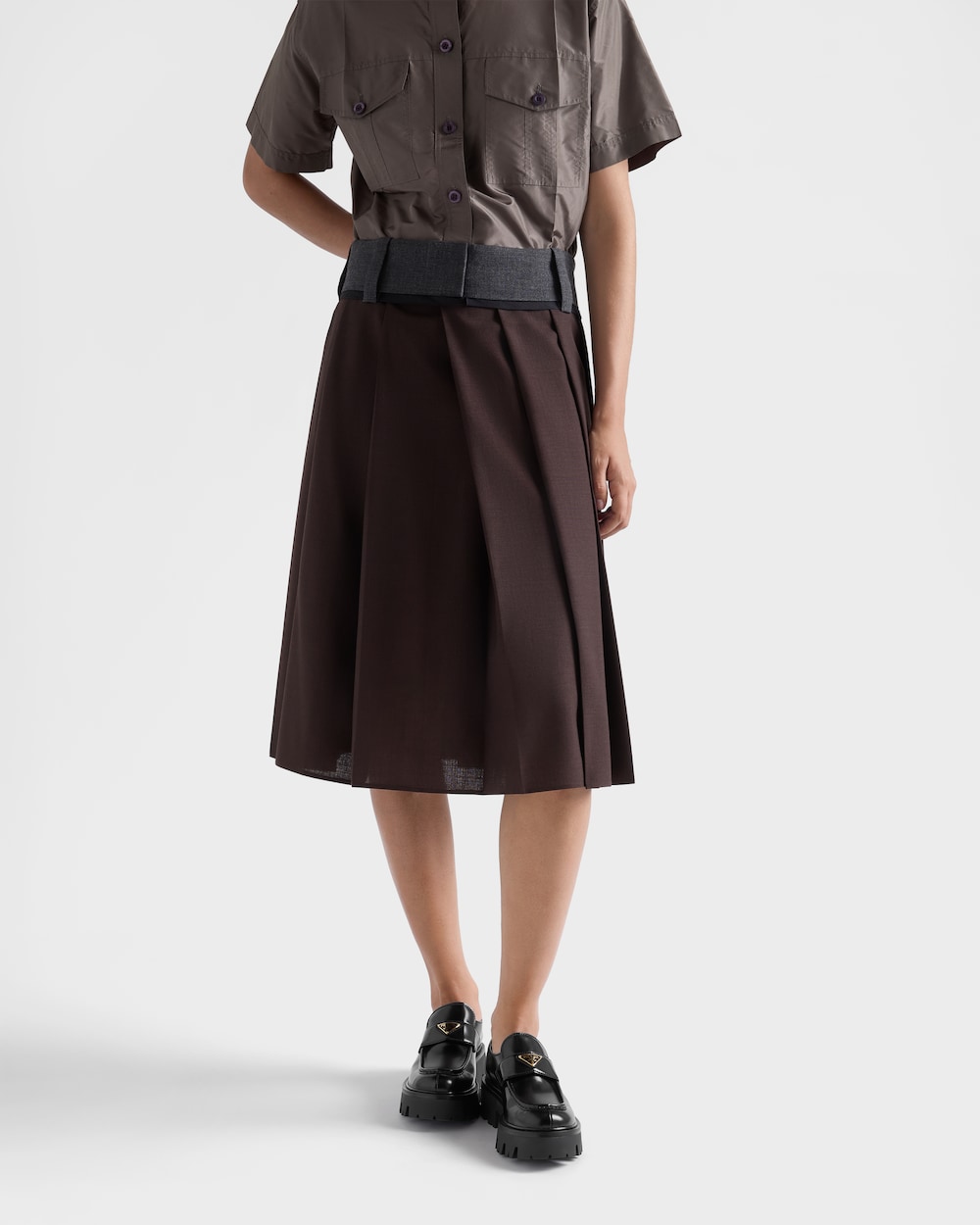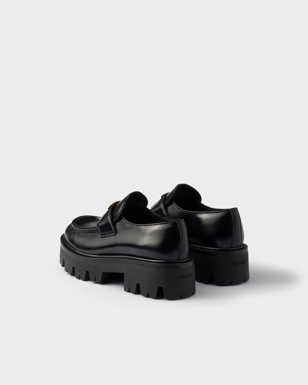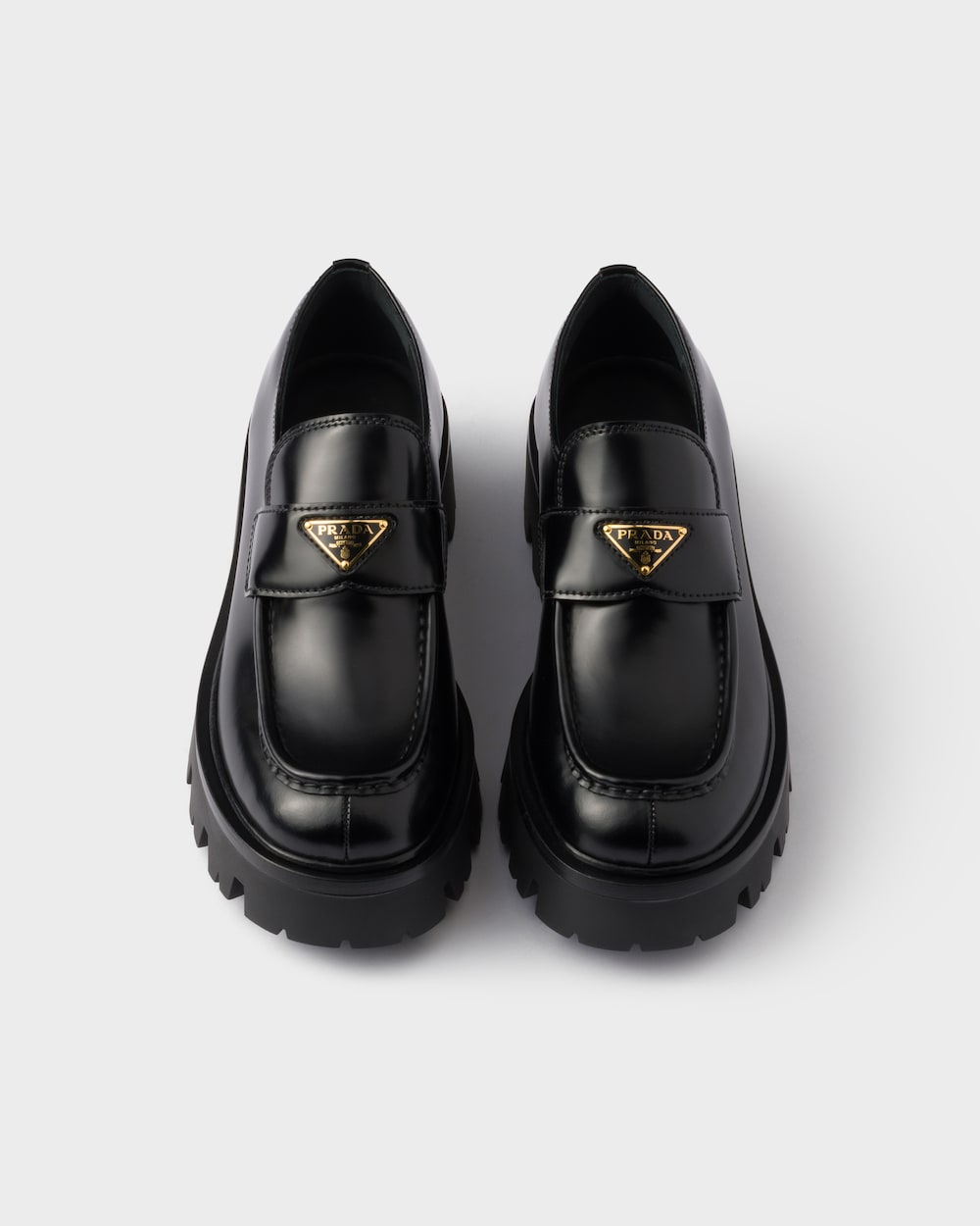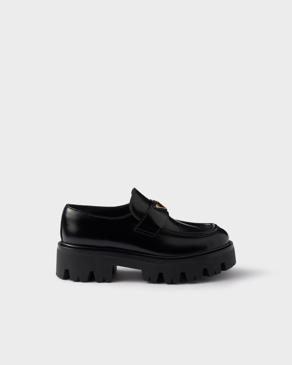 ブラッシュドレザー(牛革)製のローファーは、クラシックなデザインに現代的なボリューム感を融合させた一足です。軽量で耐久性のあるラバー素材のチャンキーソールが特徴で、トライアングルロゴをあしらった職人技のディテールが、全体のデザインを引き締めています。
