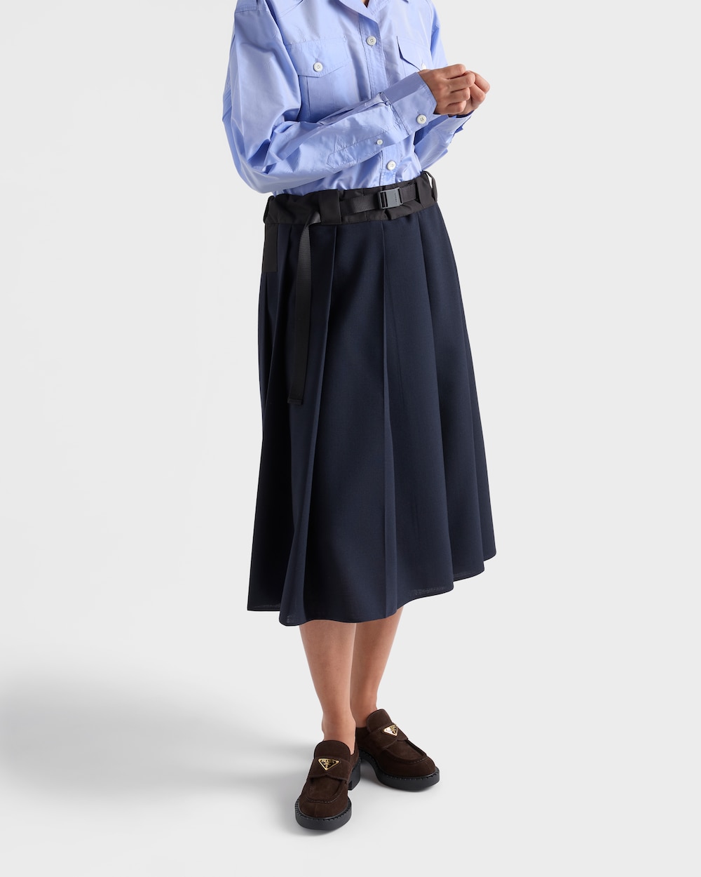 チョコレートローファーは、プラダの世界観を象徴するアイテムであり、汎用性に優れた現代的なスタイルを体現しています。ハイブリッドなスタイルは、クラシックな素材とディテールの組み合わせによって、独特なチャンキーラバーソールが際立つ、モダンでボリューム感のあるシルエットを生み出しています。スエードが、エナメルメタルトライアングルロゴで装飾されたシューズに新しい印象を与えます。