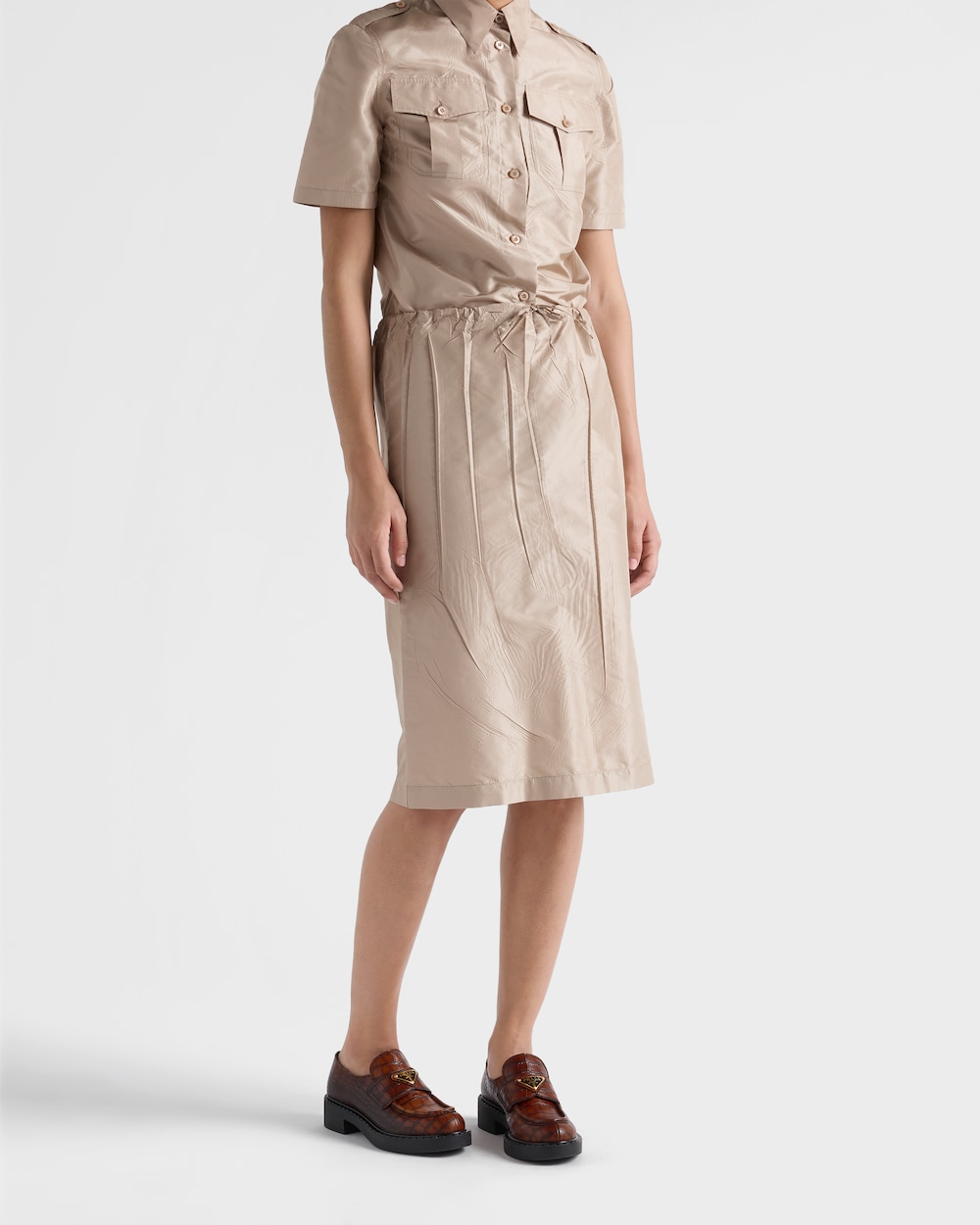 チョコレートカラーのローファーは、プラダの世界観を象徴する個性的なデザインであり、汎用性と洗練を兼ね備えたスタイルを体現しています。このハイブリッドなシルエットは、クラシックな素材やディテールと、ラバーソールのモダンなボリューム感との対比によって特徴づけられています。このエレガントな解釈では、クロコダイルプリントレザーを使用したシューズが、大胆でコンテンポラリーな印象を演出します。
