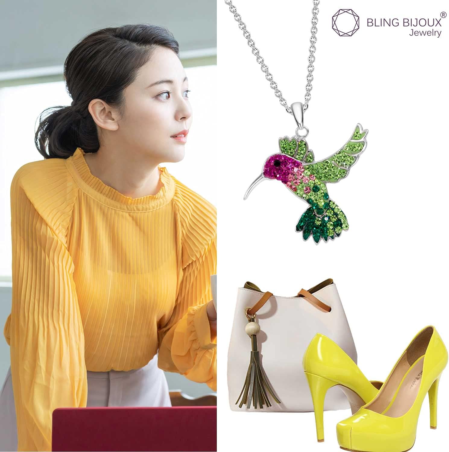 5643 人以上の知的な女性がこのカラフルなフライングハチドリクリスタルペンダントネックレスを選びました – 安い一回使用の偽物のジュエリーを購入するのではなく。