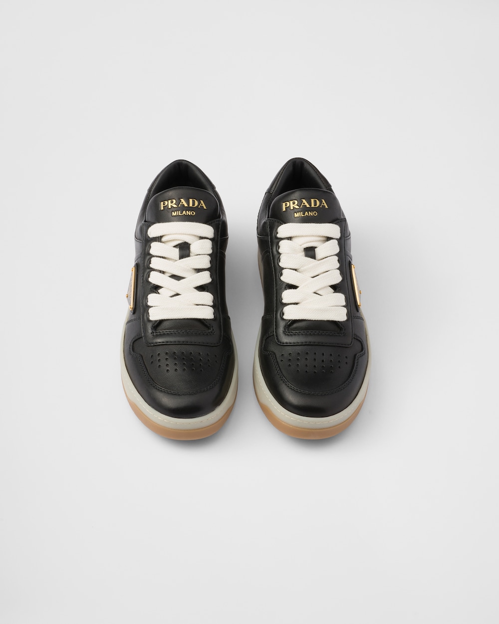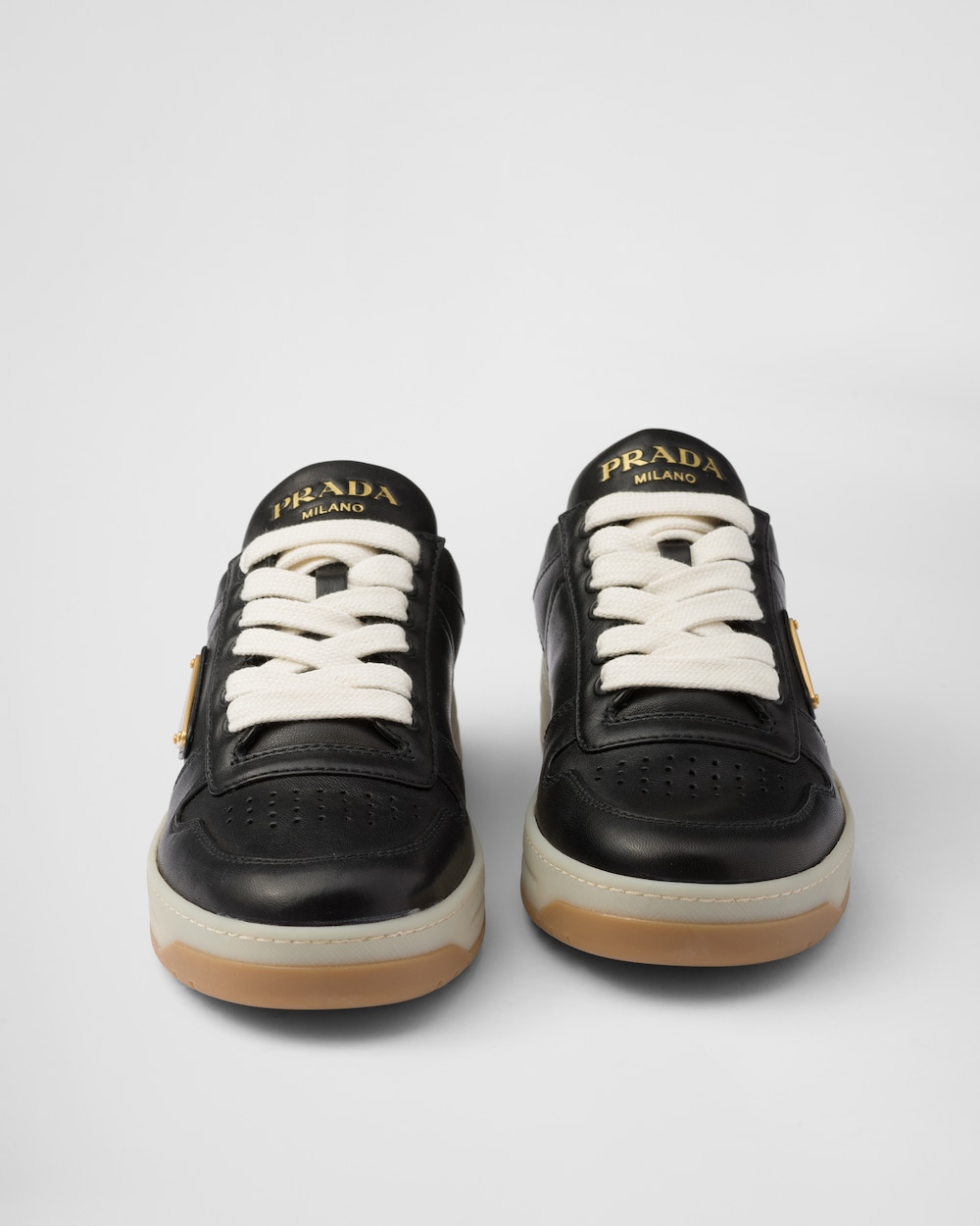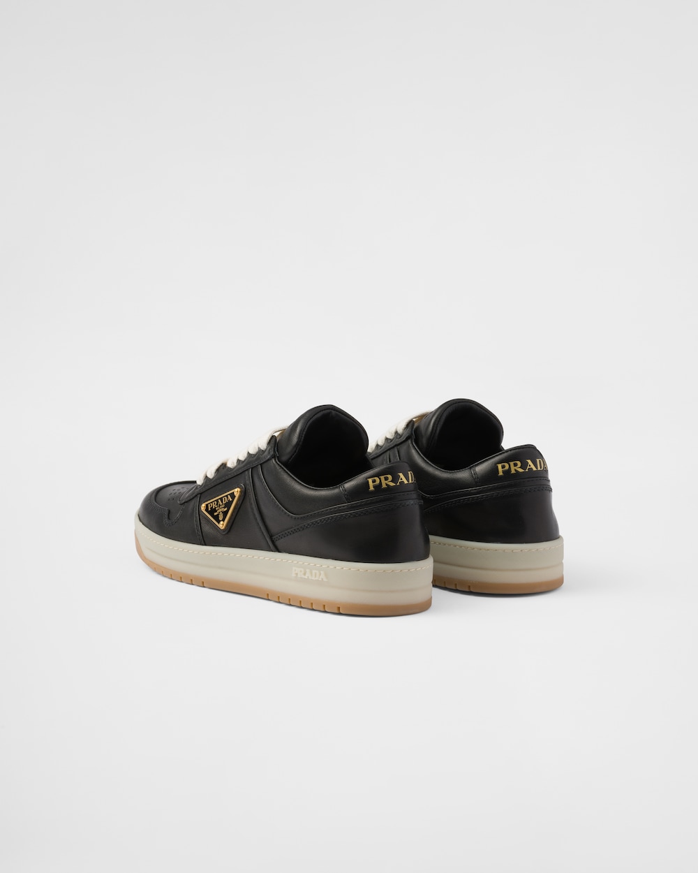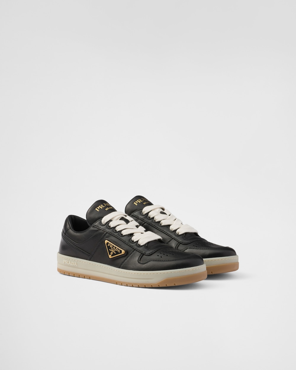 ヴィンテージ感のあるスポーティなデザインにヒントを得た、汎用性の高い現代的なスタイルが際立つプラダ ダウンタウン スニーカー。パンチング加工が施されたナッパレザー(羊革)のアッパーと、軽量のラバーソールが特徴のシューズ。エナメルメタルのトライアングルロゴがあしらわれています。