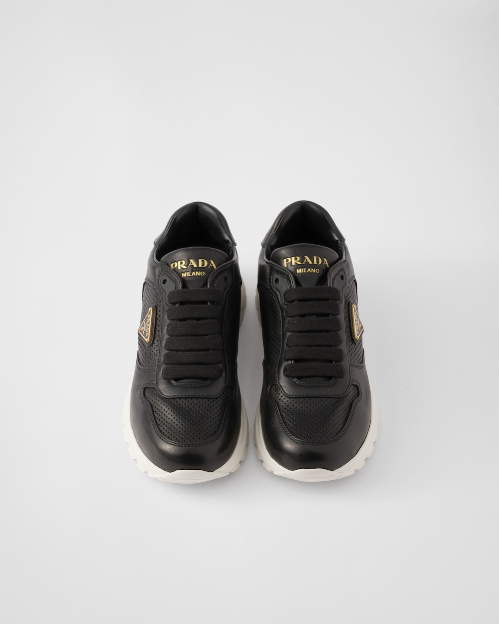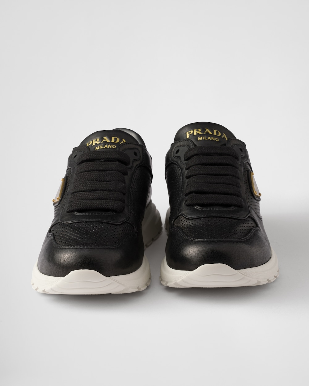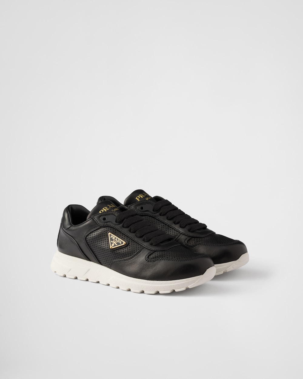 パンチング加工のレザーを使用し、軽量のラバーソールを採用したプラダ Prax 2.0スニーカー。現代的なラインを描くスポーティなデザイン。プラダを象徴するトライアングルロゴが、洗練されたアクセントを添えています。