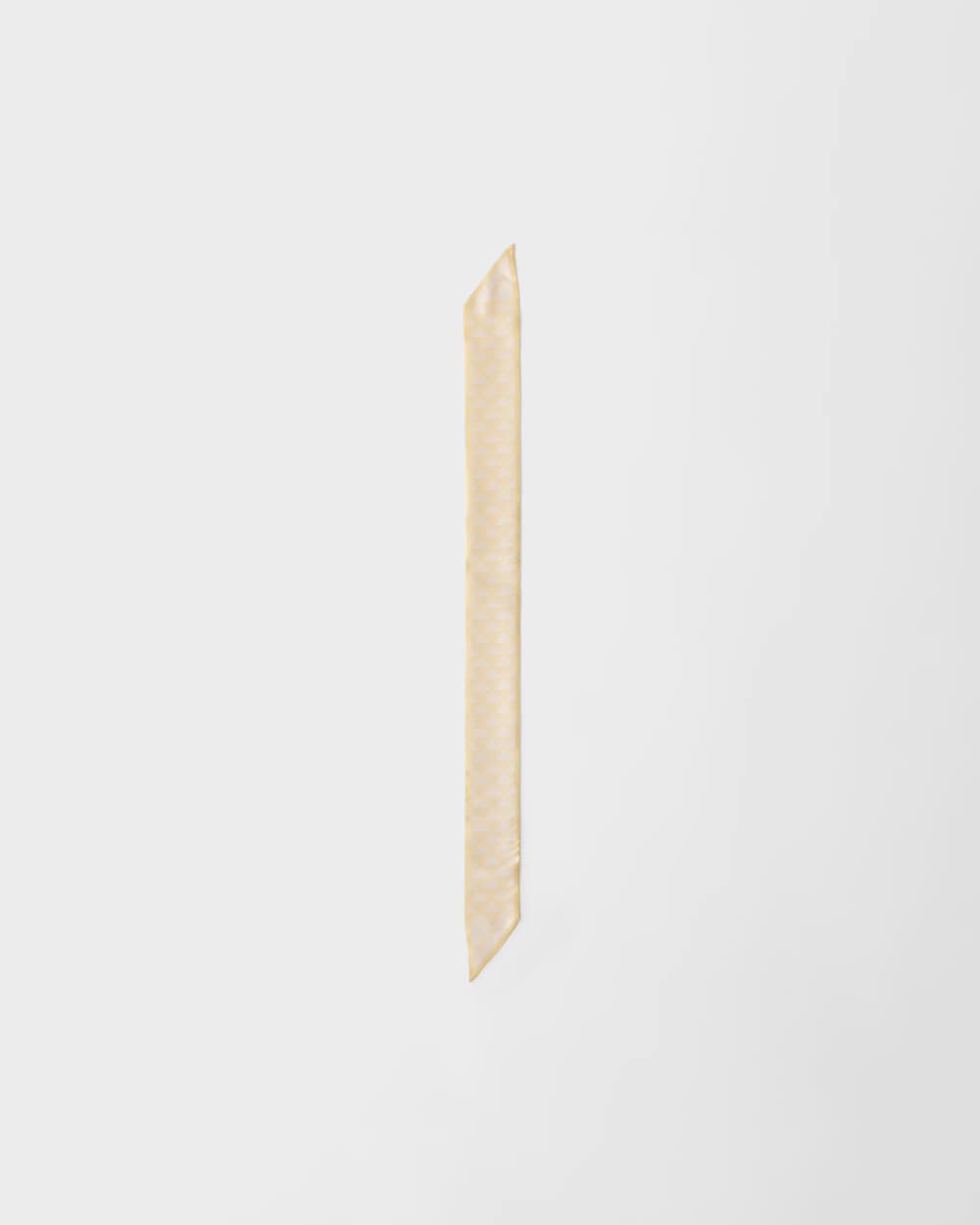 このシルクネクタイは、独特なシンボルモチーフが際立ち、精巧な糸染めジャカード編み技術で仕上げられています。ユニークで洗練されたアクセサリーで、プラダの職人技と象徴的なコードを体現しています。
