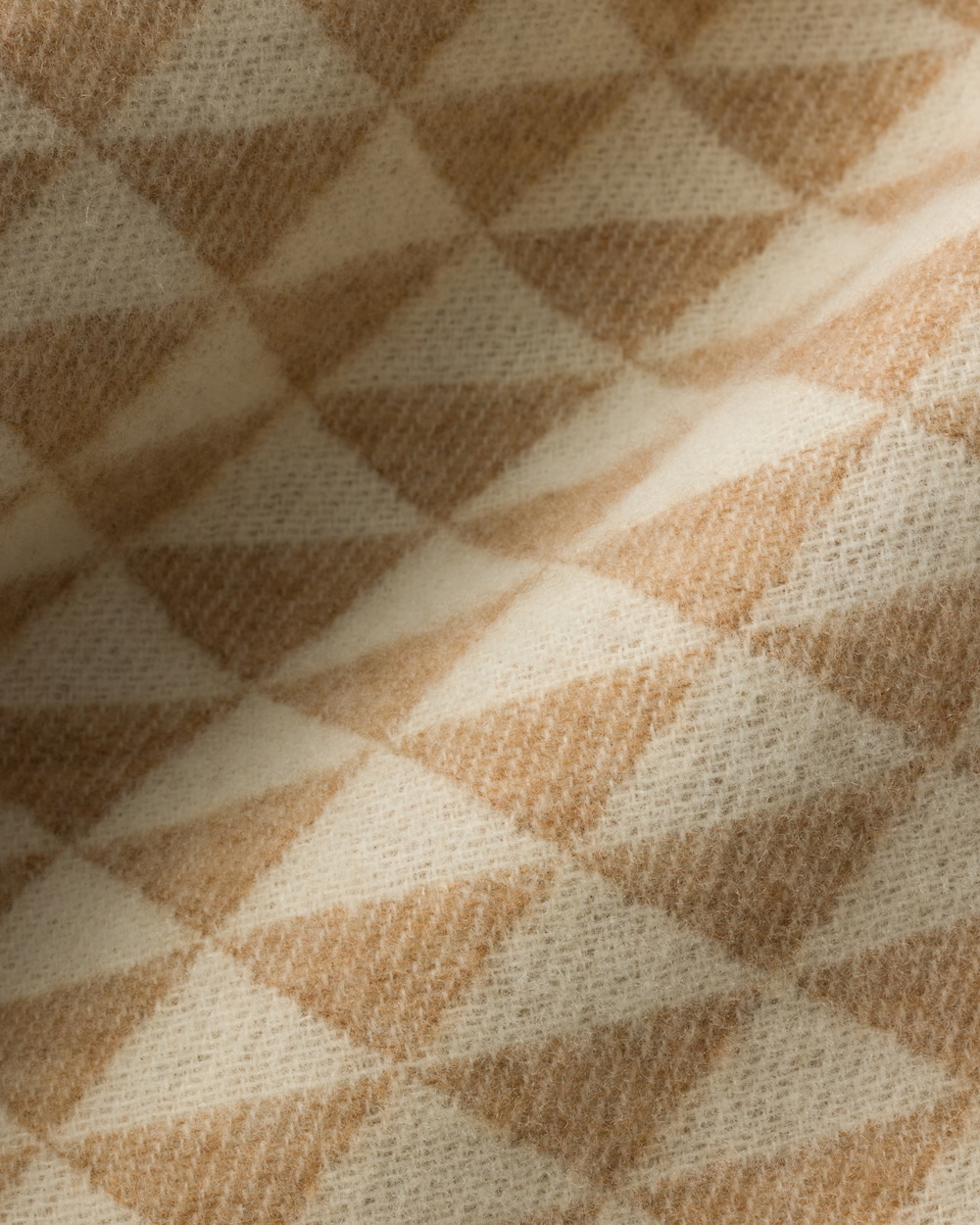 ウールとカシミヤを使用した、モダンで汎用性の高いストール。アイコニックな幾何学モチーフを描くプラダ シンボルのモチーフをあしらったリバーシブルデザイン。ストールの対角にあしらわれたジャカードロゴが、プラダらしさを添えるアイテム。
