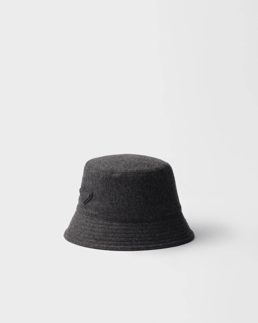 暖かく多用途なローデンファブリックが、アイコニックなバケットハットのシンプルなシルエットを引き立てます。アーバンエッセンスと冬のテクスチャーが組み合わされた特徴的なアクセサリーで、エナメルメタルトライアングルロゴが飾られています。