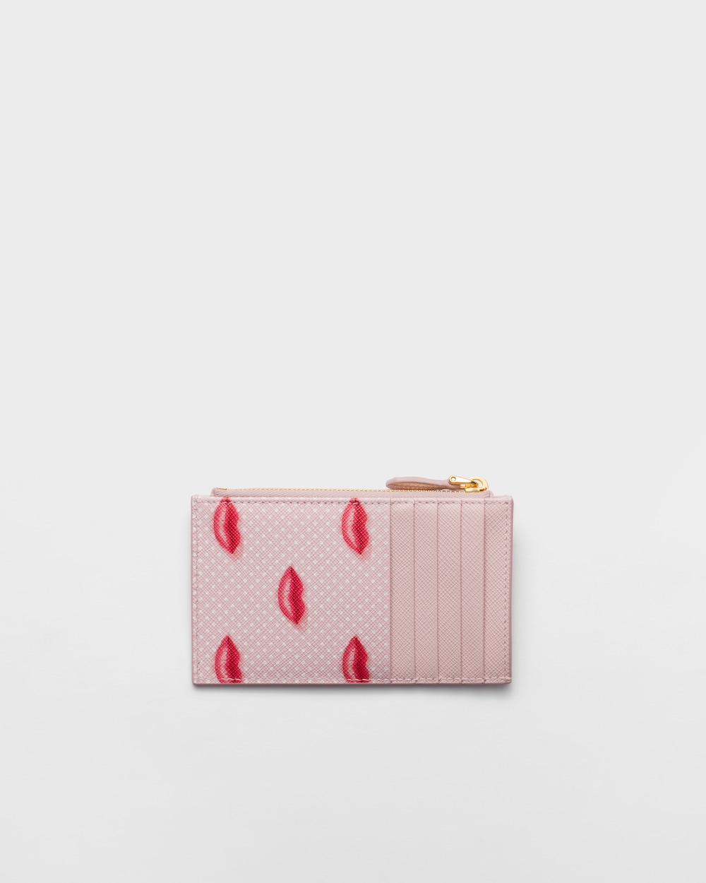 2000年代に初めて登場したリッププリントは、プラダの世界を象徴するモチーフであり、ポップな魅力を持つサフィアーノレザー(牛革)製カードケースを引き立てます。