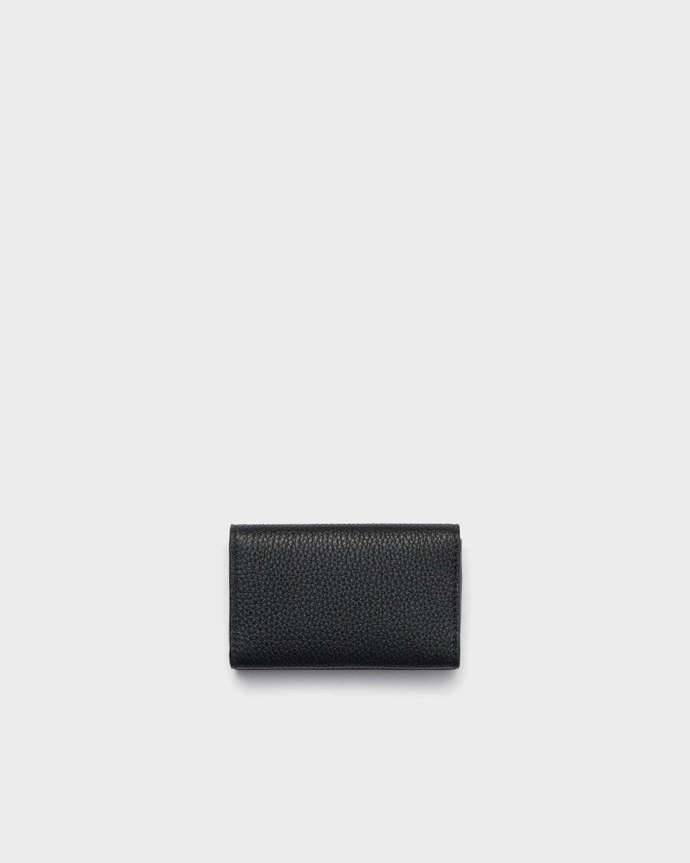 洗練されたラインとエレガントなコンパクトデザインが魅力のレザーのカードケース。4個のカードホルダーを備え、メタルのレタリングロゴをあしらって仕上げた上品なカードケース。