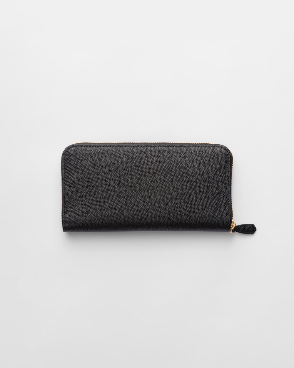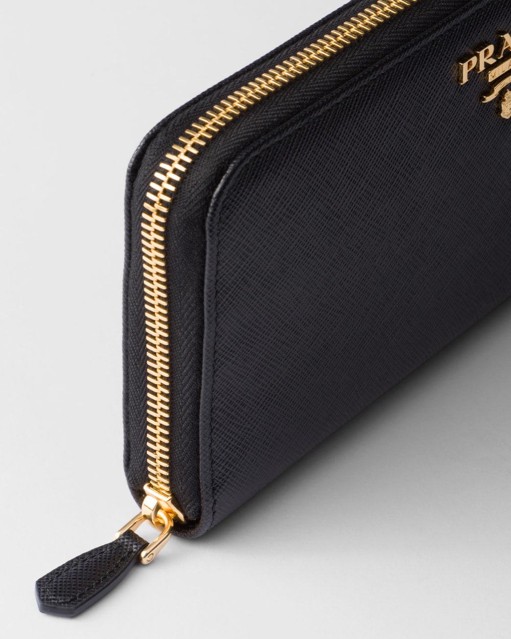 プラダを象徴する素材「サフィアーノ」レザーを使用し、内側にはコントラストの効いたマルチカラーのデザインに仕上げたジップアラウンドの長財布。高品質のカーフレザーにクロスハッチ加工とワックス仕上げを施した「サフィアーノ」レザーの質感をお楽しみいただけるアイテム。アクセントとしてレタリングロゴがあしらわれています。