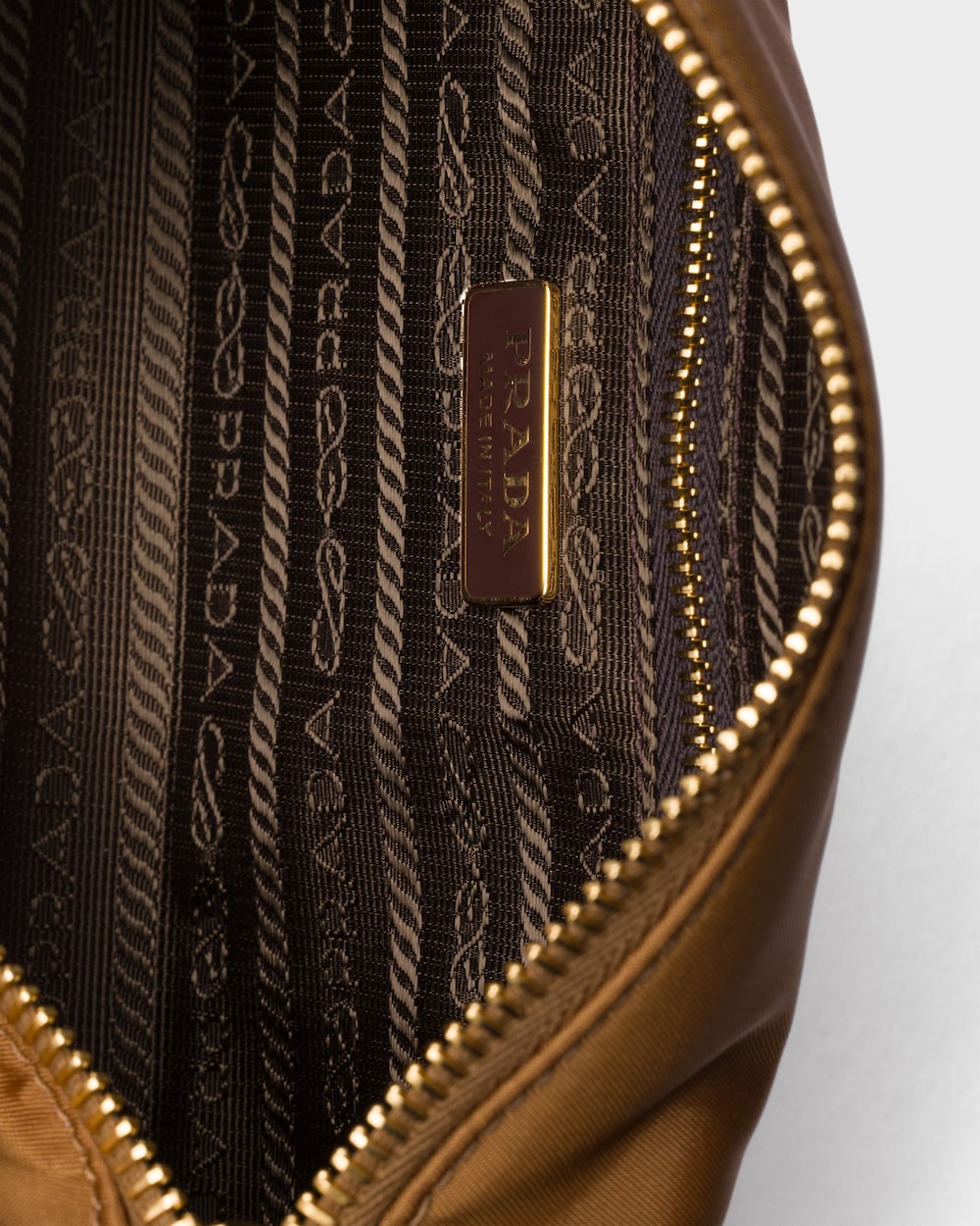 - ロゴプリント入りRe-Nylonライニングにファスナー付ポケット