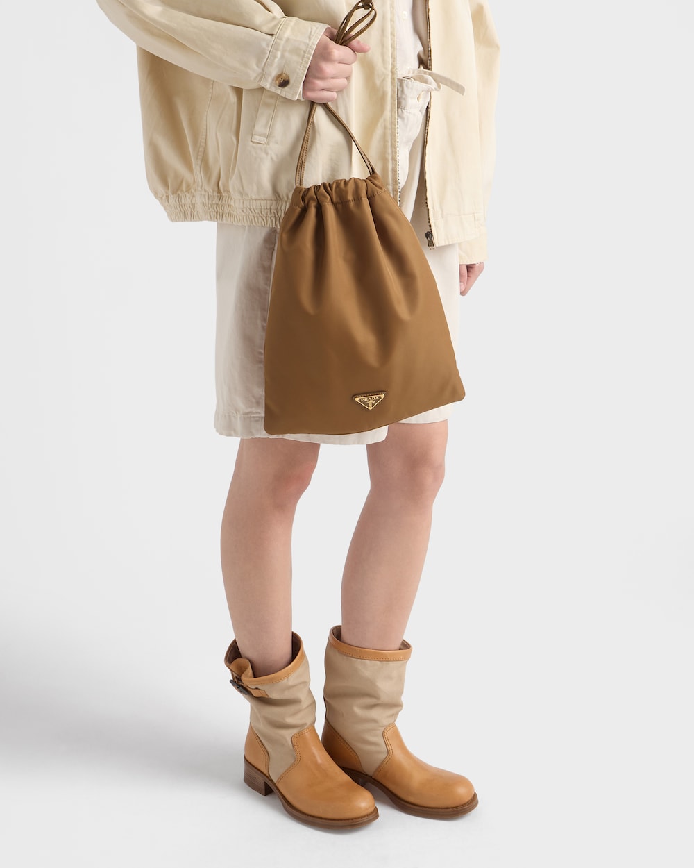 革新的なRe-Nylonファブリックを使用したプラダ ウィッシュ ポーチ。海から回収されたリサイクルプラスチック素材を使用し、実用性と洗練された美しさを兼ね備えています。洗練されたRe-Nylonのシルエットに職人技のディテールとレザーの編み込みを加え、自然で洗練された親しみやすいエレガンスを表現します。この商品はSEA BEYOND 教育プロジェクト支援の対象商品ではありません。