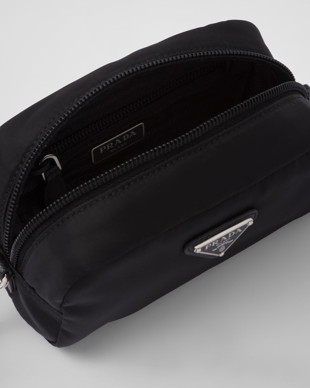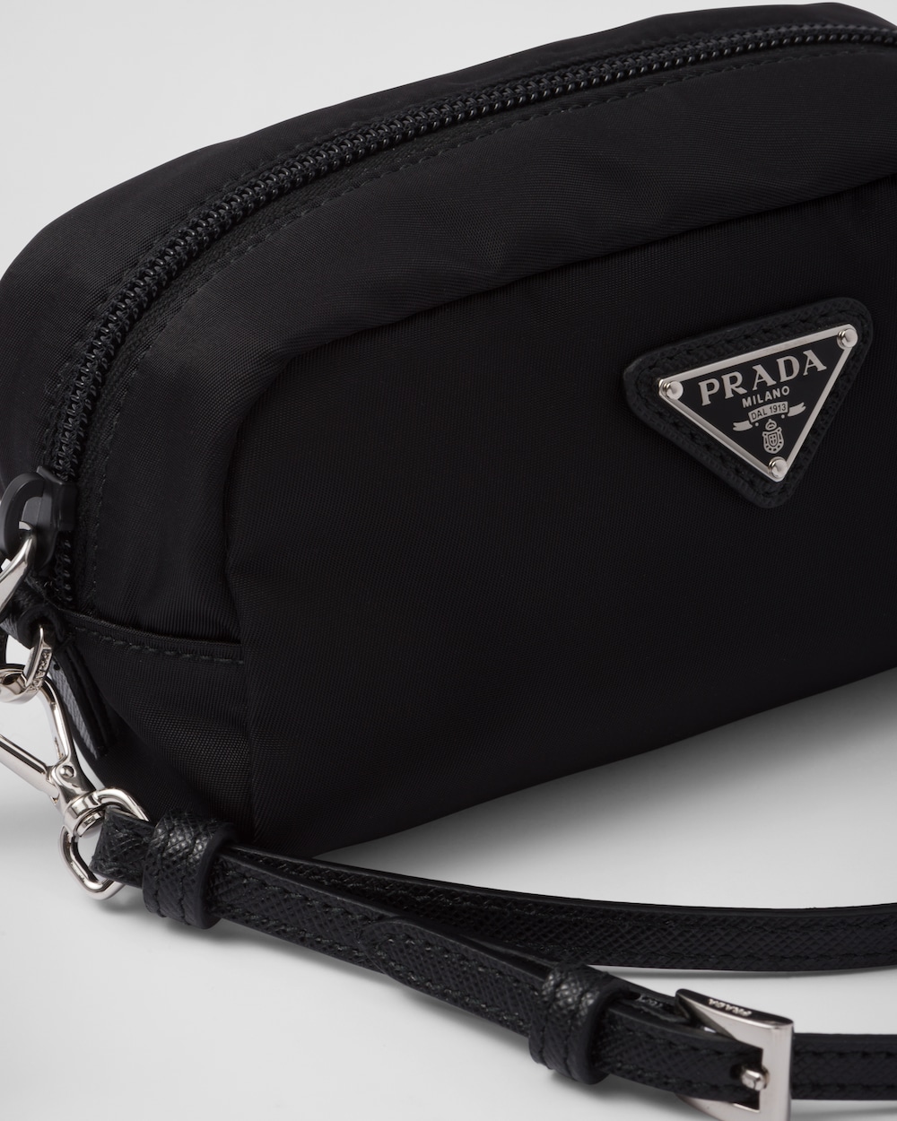 アイコニックなエナメルメタルのトライアングルロゴで引き立つ洗練されたラインのポーチ。海から回収されたプラスチック素材をリサイクルして作られたプラダの革新的なファブリックであるRe-Nylonを使用。内側にポケットを備えた、ファスナー開閉式のデザイン。 サスティナブルなお手入れ方法:製品の風合いを保つため、また環境への負荷を軽減するために、製品を頻繁にクリーニングすることを推奨しておりません。使用後は風通しの良い場所で陰干ししていただき、クリーニングが必要な場合は環境に配慮したクリーニング店でドライクリーニングをすることをおすすめします。