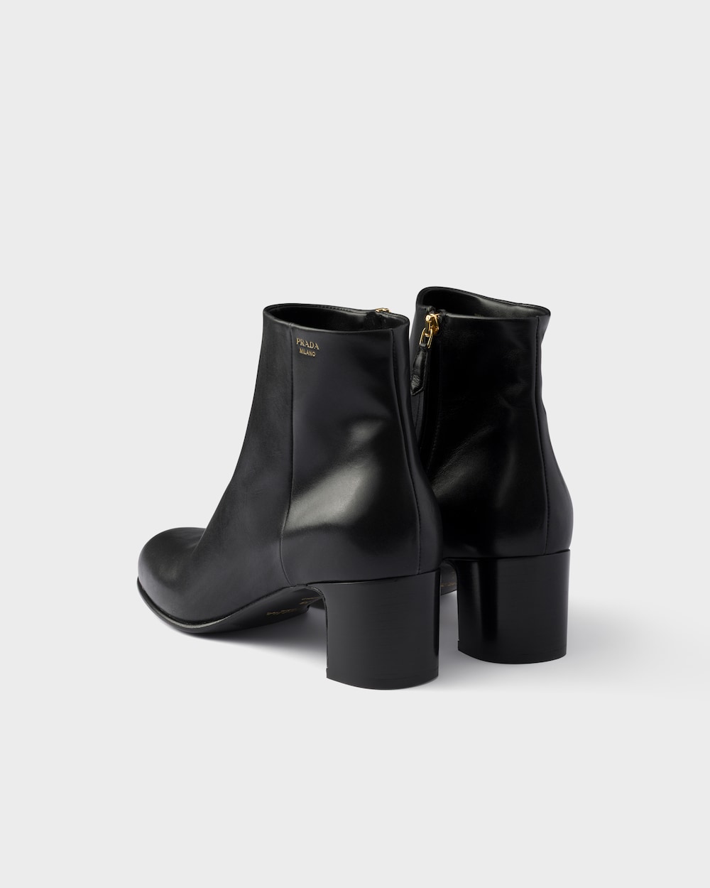 これらのレザーブーティの直線的なシンプルさが、多用途で時代を超えたシューズを際立たせています。洗練されたラウンドトゥシルエットにレタリングロゴがあしらわれています。