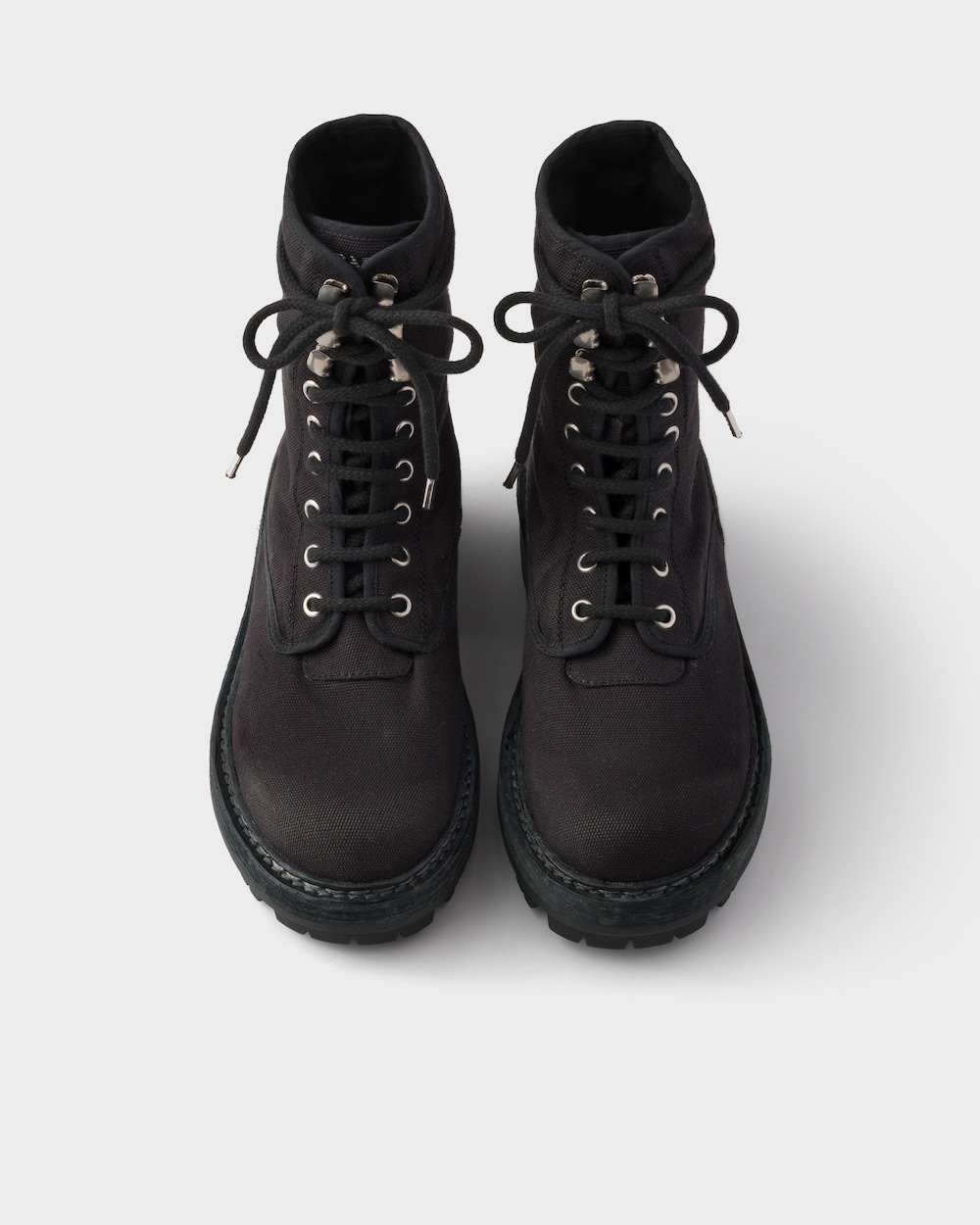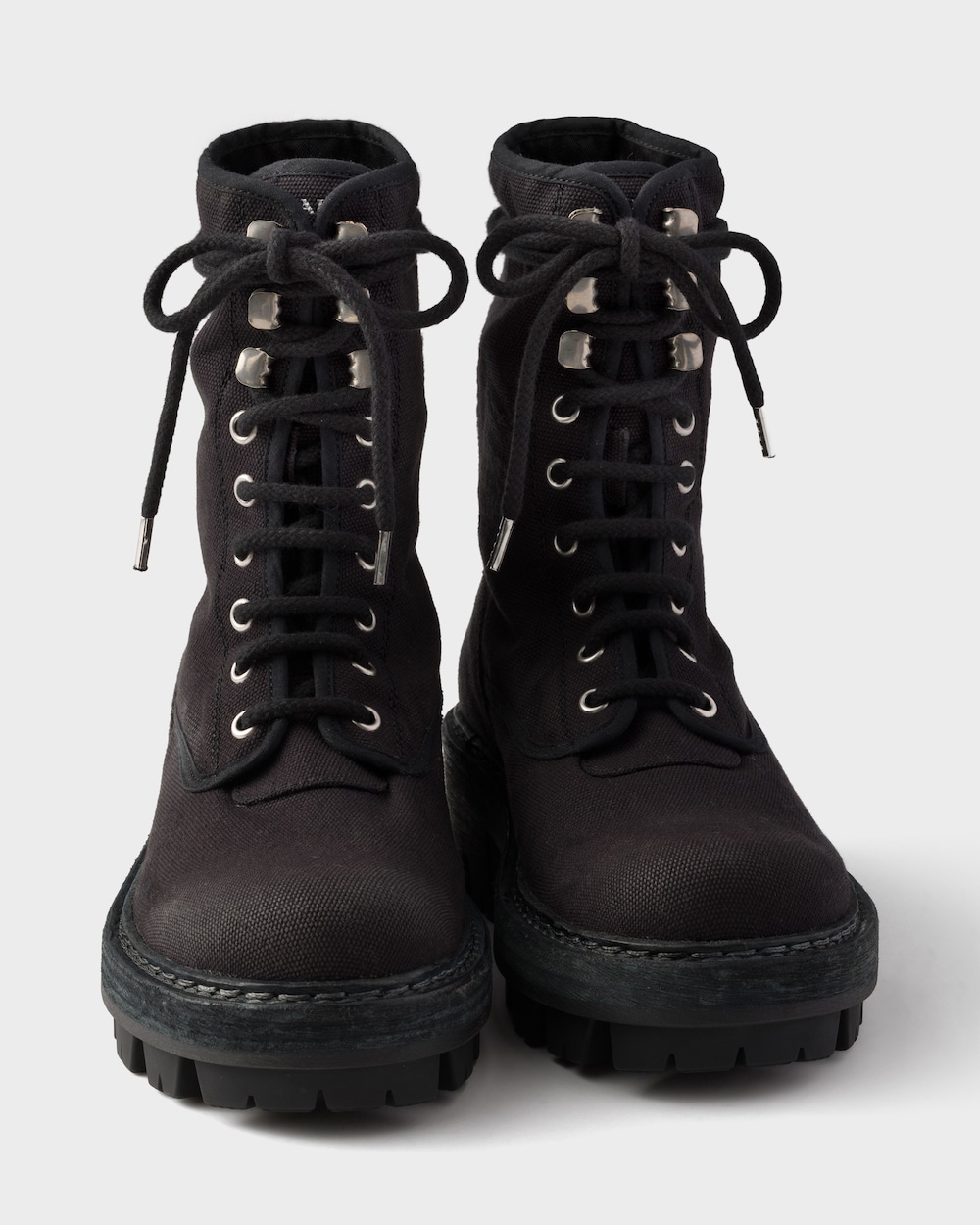 ユーティリティディテールと大胆なボリュームが特徴のレースアップアンクルブーツ。キャンバスを使用したブーツは、ワークウェアにインスパイアされたデザインの実用的な本質を強調し、構造と快適さを提供するオーバーサイズのラバーソールを備えています。