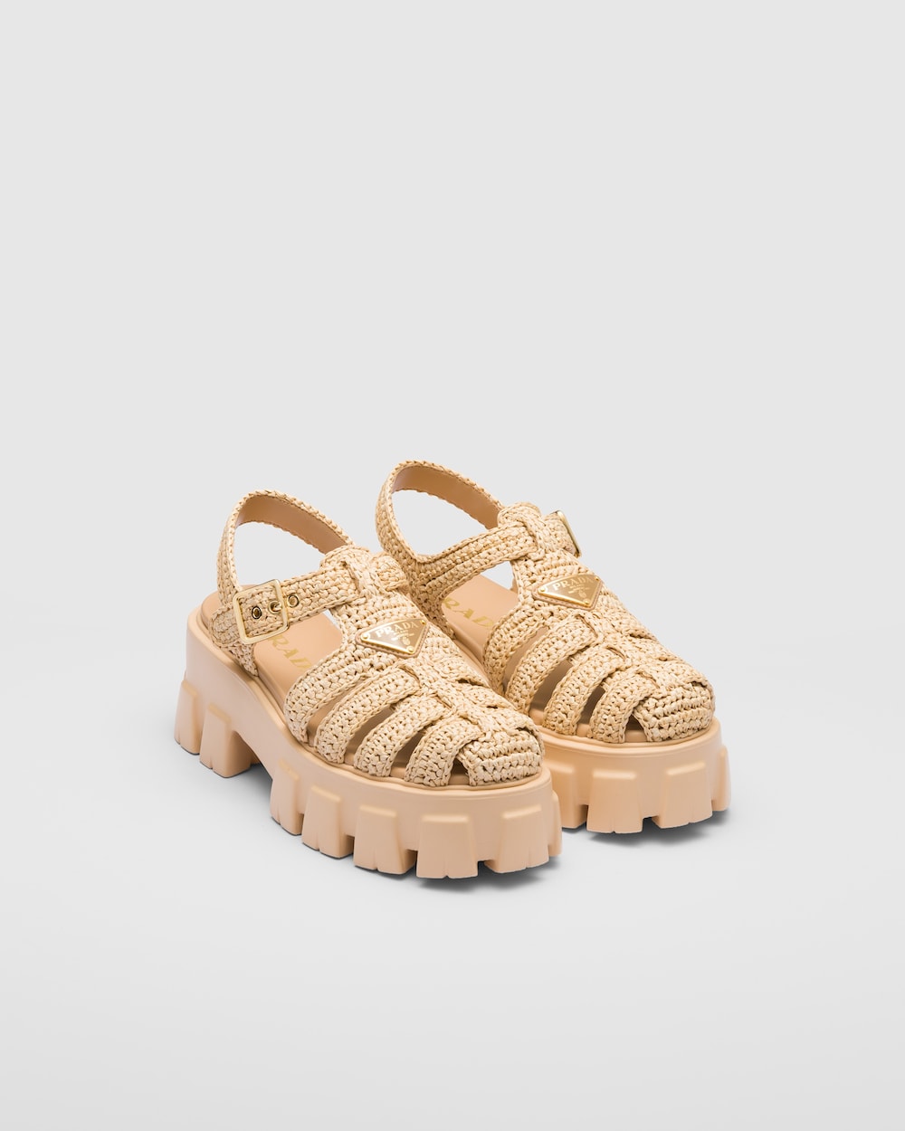 アイコニックなプラダ モノリスのスタイルを再解釈した夏らしいデザイン。洗練されたクロシェ編みと卓越したクラフツマンシップに、オーバーサイズのボリューム感のあるスポーティなデザインが融合しています。新たな実験と伝統は、メタルのトライアングルロゴなどの独特なディテールによって体現されています。