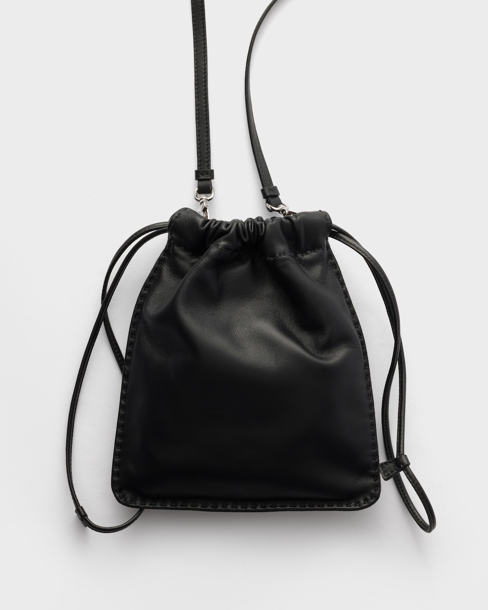 アイコニックなプラダ ポーチがミニサイズに縮小され、ナッパレザーのスマートフォンホルダーとして再解釈されます。ショルダーストラップ付のアクセサリーは、レタリングロゴで装飾されています。