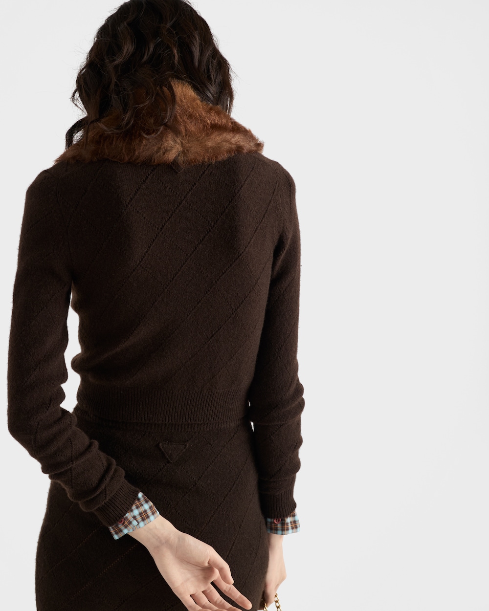 洗練されたオープンワークニットのモチーフが、このスカートに繊細で上品な魅力を添えています。カシミヤの柔らかな肌触りが、スリムなシルエットに快適さと洗練された印象をもたらします。