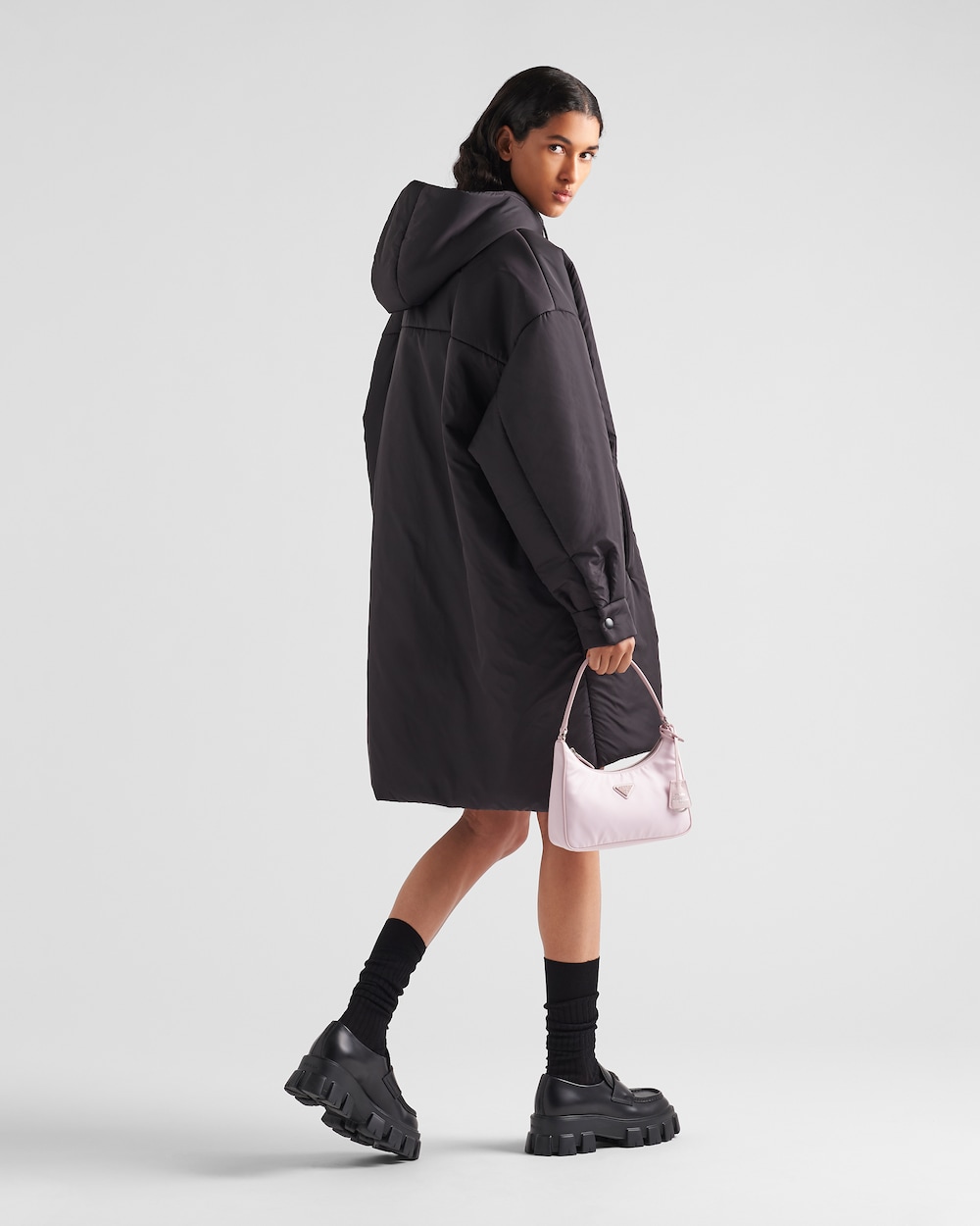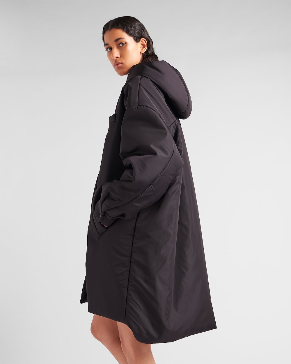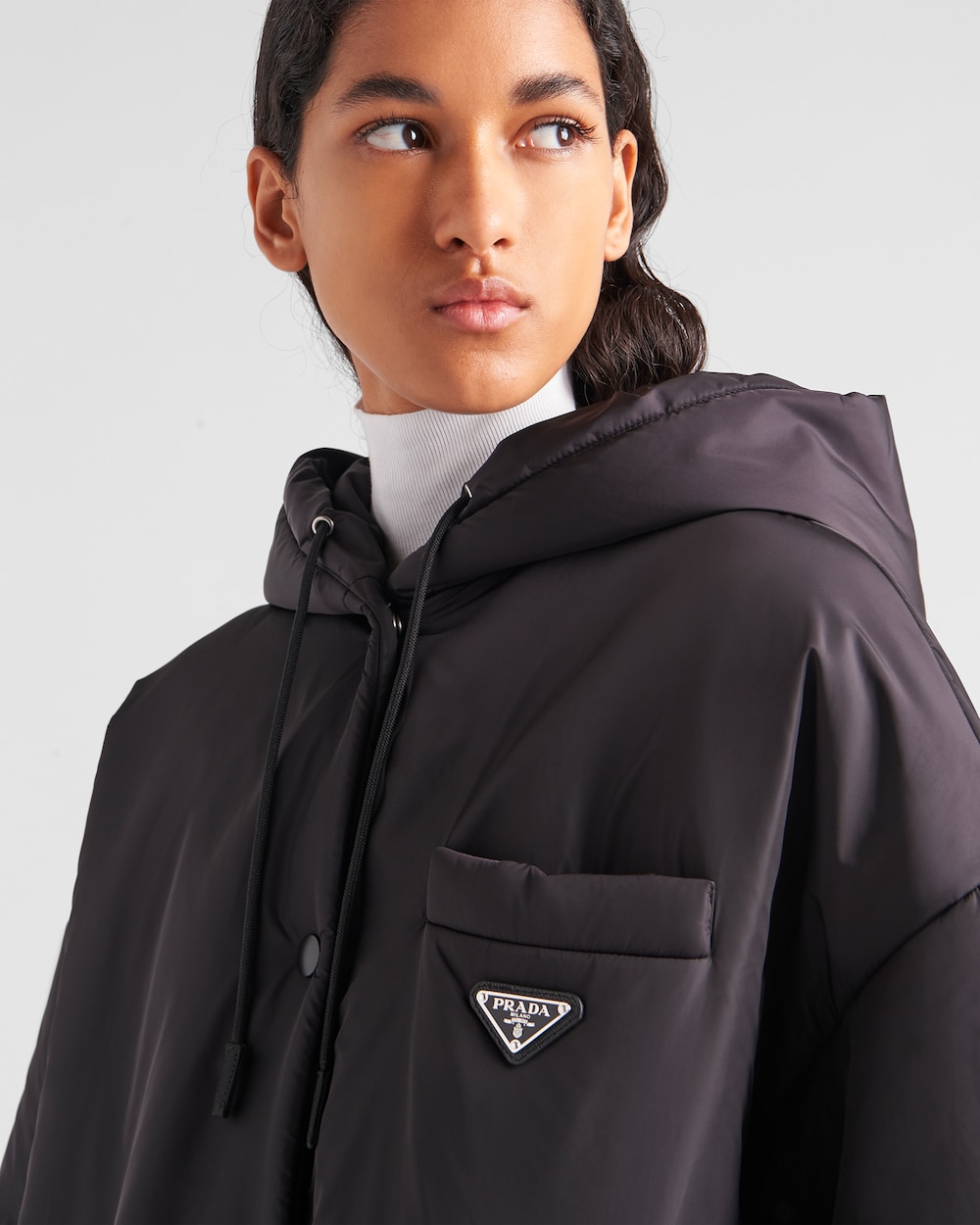 かっちりとしたラインとスポーティなムードが調和し、フードとアシンメトリーなハイローヘムをあしらったオーバーサイズのレインコート。包み込むような美しいシルエットを描く素材には、プラダによって初めてラグジュアリーブランドで採用されたナイロンを使用。Re-Nylonは、海から回収されたリサイクルプラスチック素材で作られた再生糸です。 サスティナブルなお手入れ方法:製品の風合いを保つため、また環境への負荷を軽減するために、製品を頻繁にクリーニングすることを推奨しておりません。使用後は風通しの良い場所で陰干ししていただき、クリーニングが必要な場合は環境に配慮したクリーニング店でドライクリーニングをすることをおすすめします。