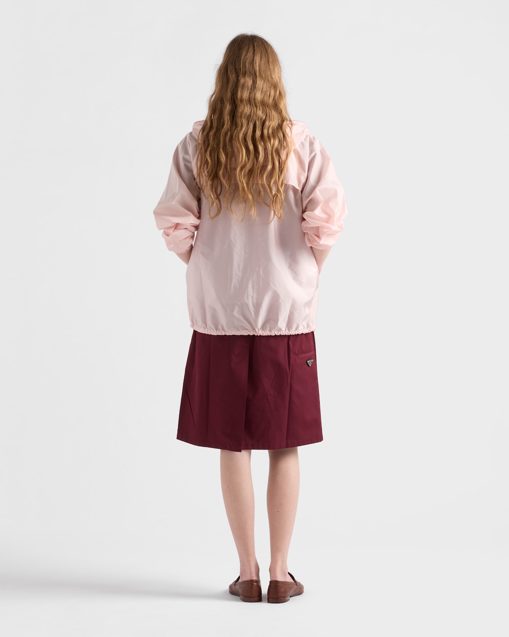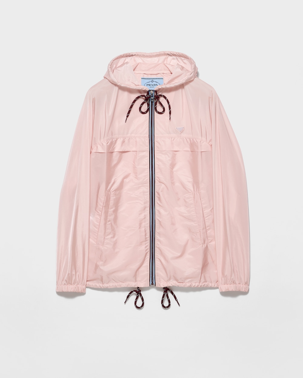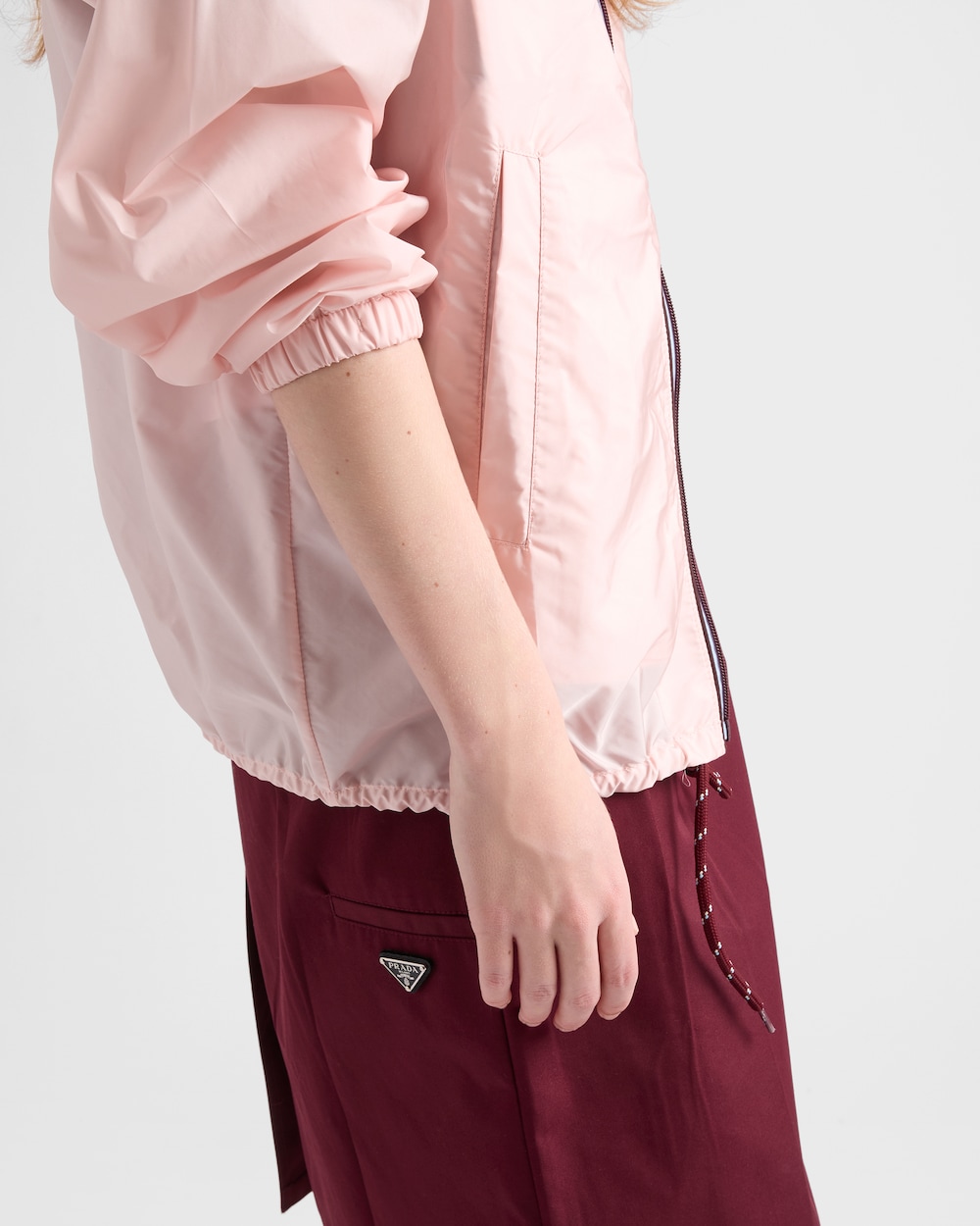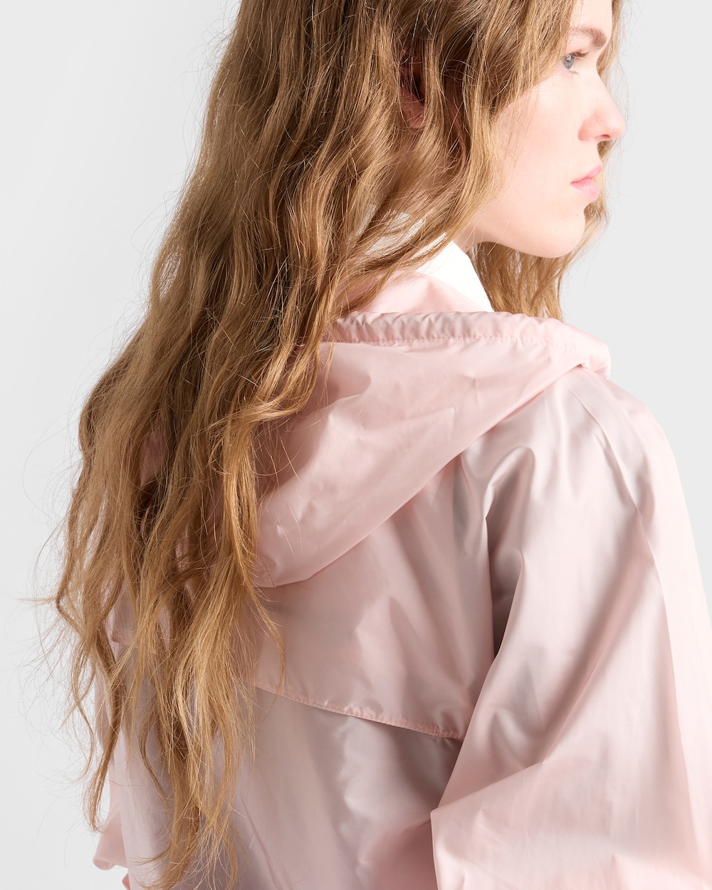 このRe-Nylonレインコートは、ミニマリズムと機能性を兼ね備えた汎用性のあるデザインです。軽やかでダイナミックなシルエットのフード付きデザインは、スポーティなディテールで特徴付けられ、アイコニックなトライアングルロゴで装飾されています。