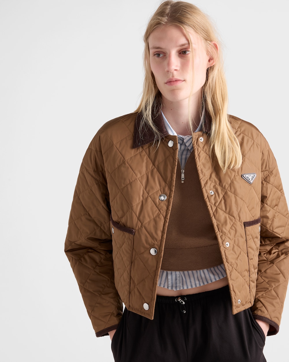 タイムレスなデザインを現代的なクロップド丈に再解釈したキルティングジャケット。プラダのコレクションを象徴する、海から回収されたプラスチック素材をリサイクルして作られた革新的な再生ナイロンファブリックRe-Nylonを使用し、実用的なスタイルに仕上げています。コーデュロイの襟とトリムをあしらい、プラダらしいアイコニックな魅力を添えるエナメルメタルのトライアングルロゴを飾りました。 サスティナブルなお手入れ方法:製品の風合いを保つため、また環境への負荷を軽減するために、製品を頻繁にクリーニングすることを推奨しておりません。使用後は風通しの良い場所で陰干ししていただき、クリーニングが必要な場合は環境に配慮したクリーニング店でドライクリーニングをすることをおすすめします。