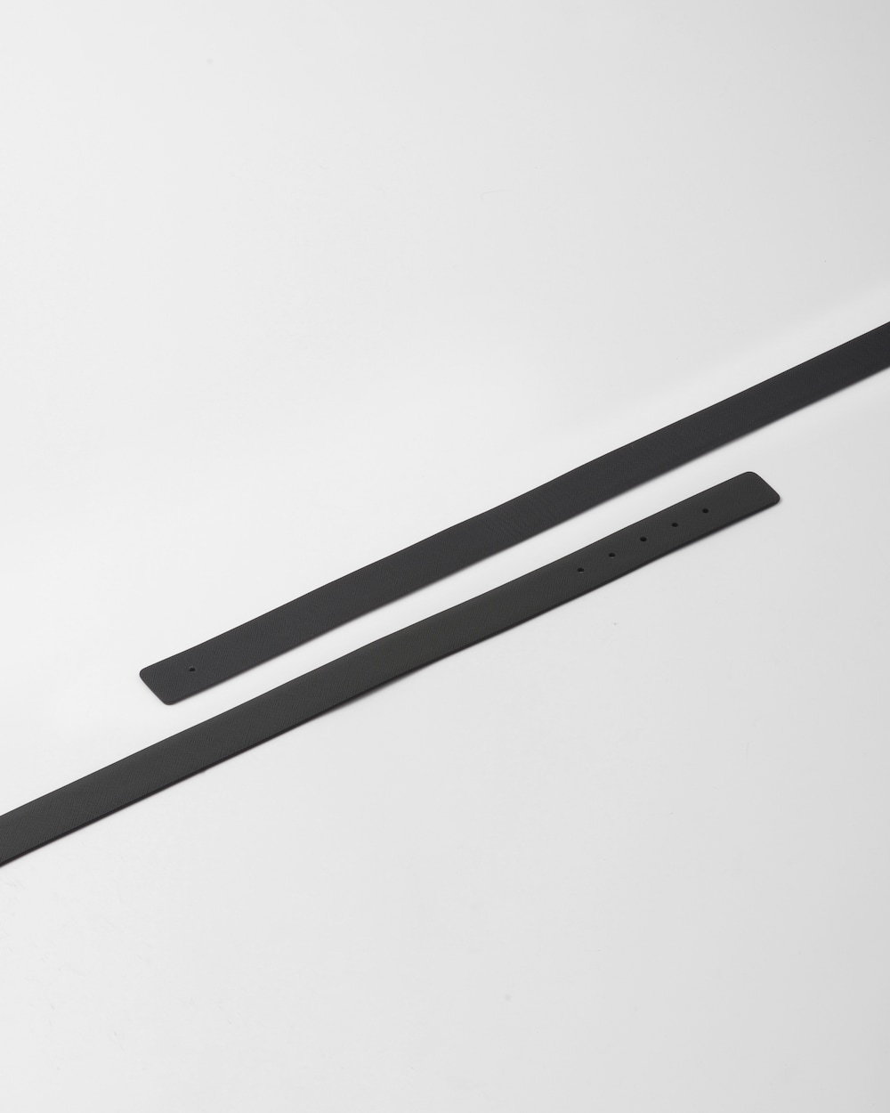 お好みのバックルで多彩な組み合わせを楽しめる、使い勝手に優れたモジュラーデザインのベルトストラップ。プラダを象徴する素材である「サフィアーノ」レザー(牛革)は、伝統的なイタリア製レザーのクラフツマンシップが息づく素材であり、ラグジュアリーの代名詞でもあります。レザー表面のクロスハッチ加工の質感とワックス仕上げが特徴的な、高品質のレザーです。