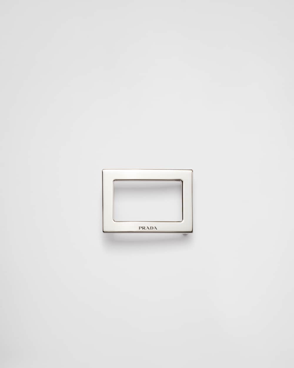 多彩な組み合わせを楽しめる、使い勝手に優れたモジュラーデザインのプラダの刻印ロゴ入りメタル ベルトバックル。シンプルなデザインにアイコニックな魅力を添えます。