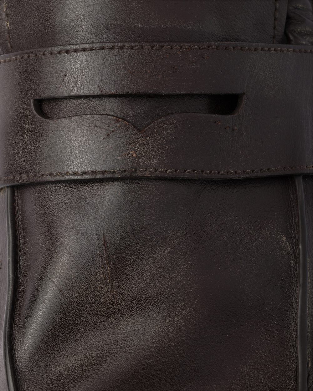 フォーマルスタイルの定番であるローファーを、革新的なデザインで新しく解釈しています。スタイルは、軽くて柔らかく、柔軟なシルエットとして進化を遂げています。アンティークレザーで作られたこのローファーは、洗練されたラインを持ち、上品なロゴで飾られています。