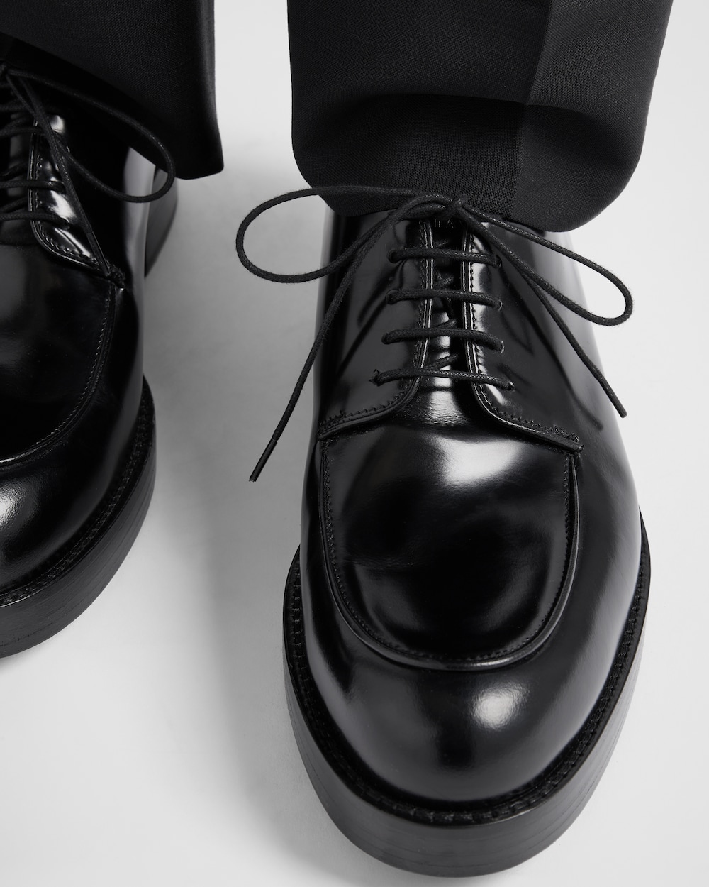 モダンなラインと洗練されたディテールにより、タイムレスなクラシックシューズを再解釈した、すっきりとしたデザインのダービーシューズ。エレガントな仕上がりのパテントレザー(牛革)が、現代的な雰囲気の漂う上品なシルエットを引き立てています。