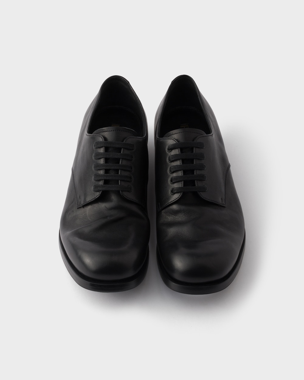 古典的でタイムレスなデザインをアンティークレザーで再解釈しました。シューレースがシャープなシルエットを引き立て、ラバー付きのハーフソールレザーが、伝統と機能性を美しく融合させています。