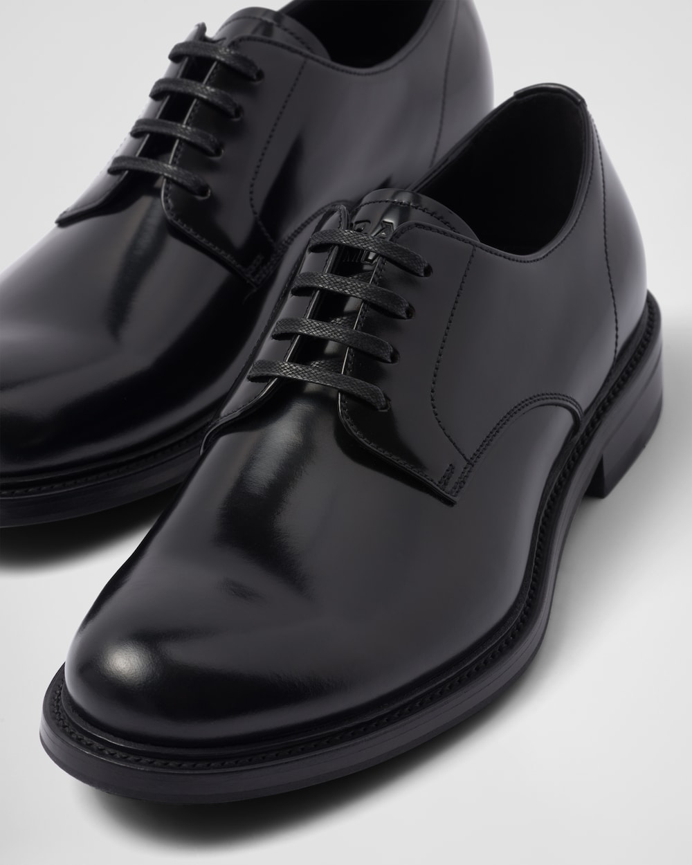 すっきりと洗練された美しさ、ボリューム感のあるシルエットが現代的なスタイルを演出するブラッシュドレザー(牛革)のレースアップシューズ。気品ある構造とメタルのレタリングロゴが個性を引き立てるデザイン。
