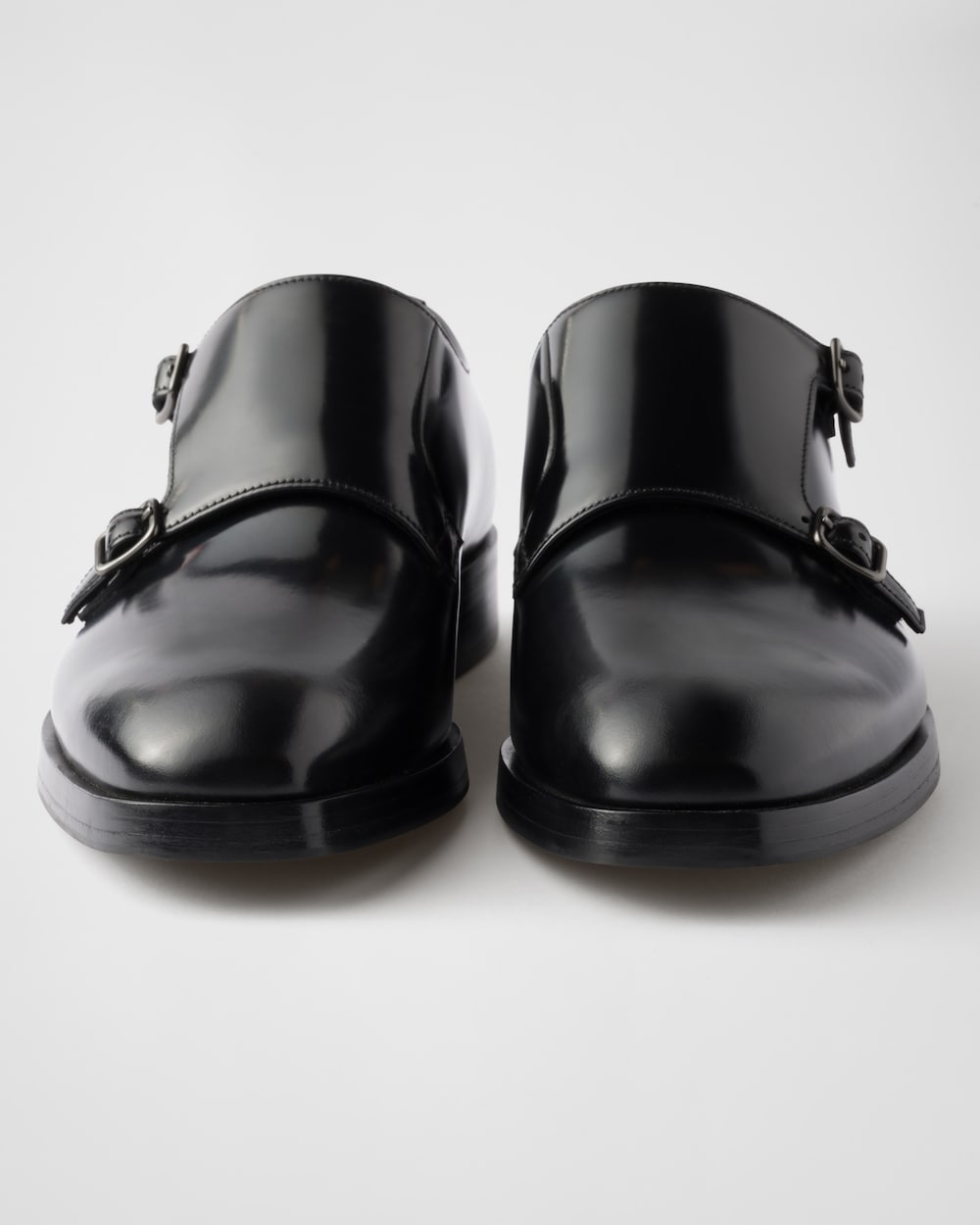 ブラッシュドレザー ダブルモンクストラップ シューズ